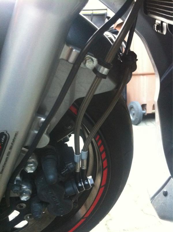 Im laufe der letzten Zeit gabs nun doch noch Wilbers-Gabelfedern und Stahlflex von Probrake ( nachdem ich erst falsche Teile geliefert bekommen habe, dann noch Fehlteile und Montageschwierigkeiten) vorne montiert, hinten muss ich mir erst noch den Arbeitsaufwand anschauen und mal sehen ob ich se noch hinschraube (Brems ja eh fast nie hinten)