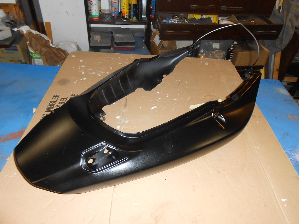 Habe ein leicht ramponierte Heckverkleidung von einer 600 Bandit gekauft, dieselbe gespachtel, geklebt und verschliffen und schon mal grundiert.