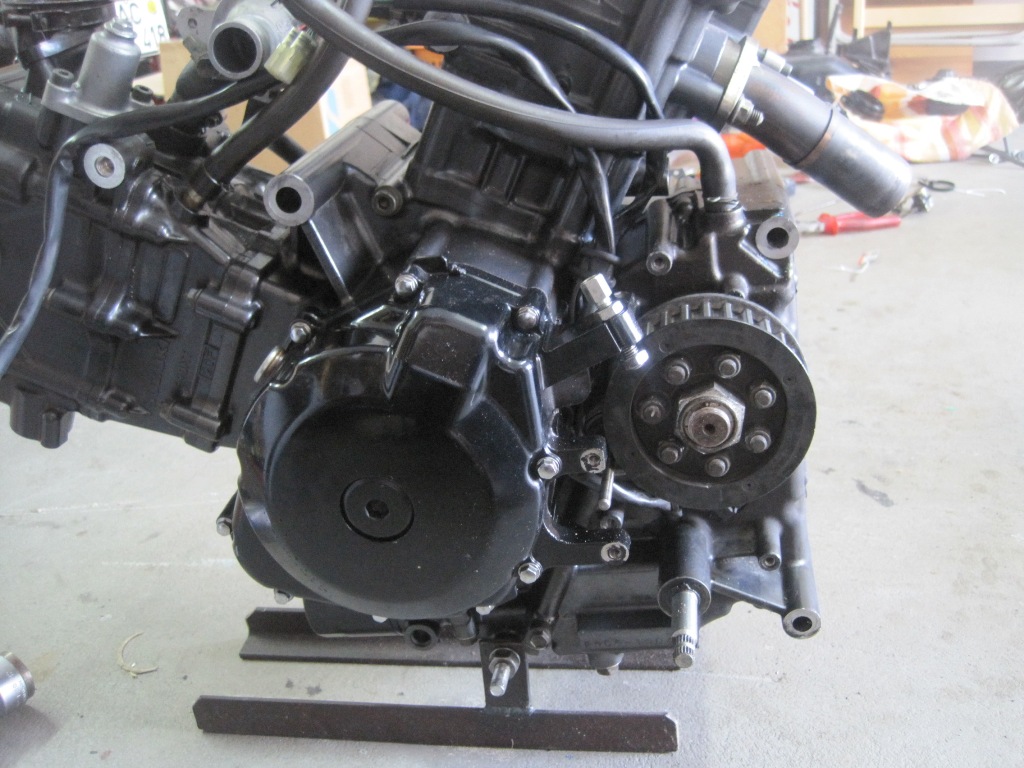 Etwas gegrübelt und festgestellt das eine 6mm Distanzplatte aus Alu hinter dem grossen Kupplungsdeckel für den richtigen Eingriff sorgen wird. Mal 3 Stunden gebohrt gesägt (Stichsäge) und gefeilt, danach noch 2x Papierdichtung geschnitten. Und den Deckel etwas weiter aussen montiert. Öl und Wasser wieder rein, und läuft. Sehr viel Ruhiger als original weil das Flankenspiel im Primärantrieb damit eleminisiert wird. Ich freu mich :mrgreen: :mrgreen: :mrgreen: