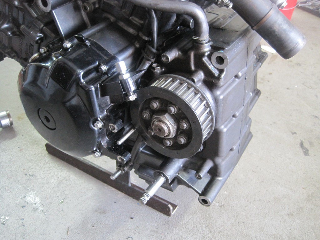 Dazu braucht man eine längere Kurbelwellenschraube M10x1,25 linksgewinde, diese habe ich bei Kawasaki gefunden unter der Nummer 92002-1457. M10x36. Diese musste ich dann um ein paar mm kürzen.