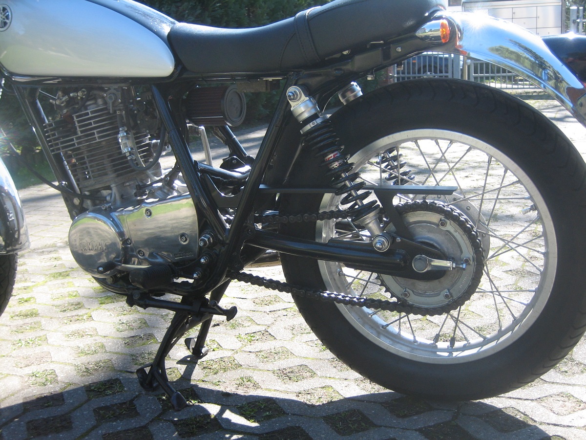 Okay...die Soziusrasten inclusive Halterungsgedöns sind weg. Minimal-Kettenschutz in schwarz ist dran. Die Ernüchterung in Bezug auf "Racer" erfolgte nach Probesitzen auf SR mit M-Lenker. Das geht nicht, nicht in meinem Alter und nicht auf den hier verfügbaren "Kurven"-Strecken...es bleibt bei Lenker Classic low, um die Brachialleistung des iNtopfs auf die Straße zu bringen.