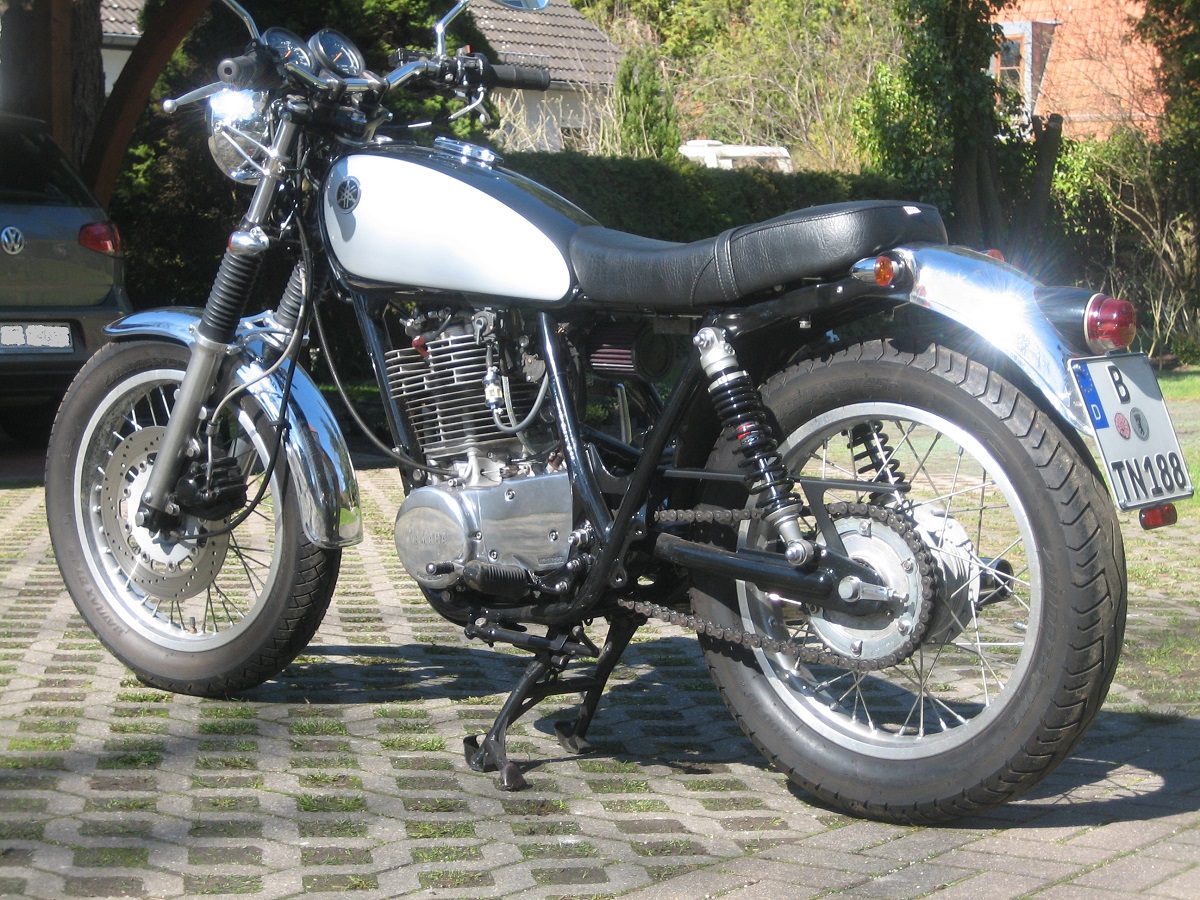 Was wäre wenn....hab noch einen zweiten Tank da für die SR. Neueste Idee: den alten Lack abschleifen bis aufs blanke Metall, klarlackieren (die Schleifspuren bleiben deutlich sichtbar). Dazu einen Satz Alu-Kotflügel dezent kürzen, ebenfalls bearbeiten und klarlackieren. M-Lenker montieren und eine Kedo-Sitzbank "Classic-Racer"...noch eine schlanke Kettenabdeckung dazu...hmmm....könnte witzig werden. Eigentlich alles ziemlich simpel, nur mit der Tankbearbeitung muß ich mich noch mal schlau machen...