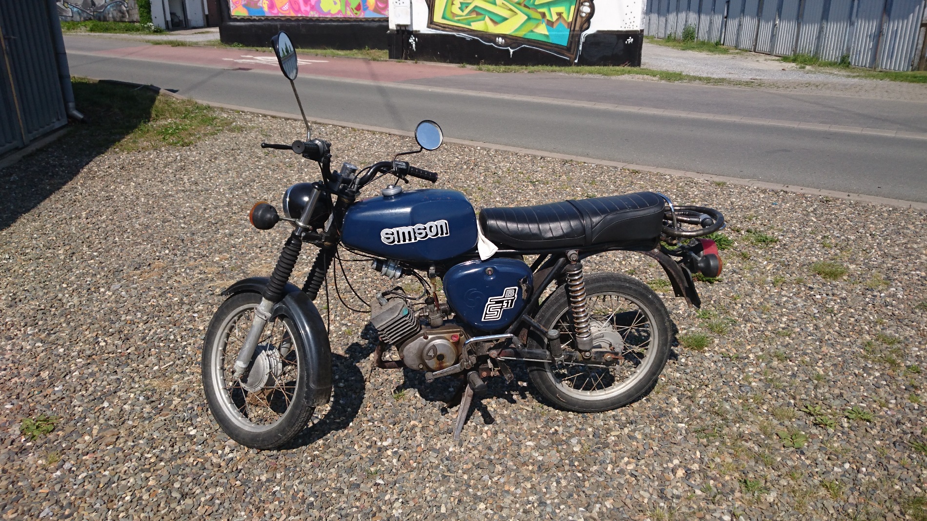 mein erstes Möp war ein "Frankenstein" zusammengesetzt aus verschiedensten Simson S50 / S51 Teilen ... nicht unbedingt schön, aber für die 50ccm recht flott (65-70 km/h) unterwegs