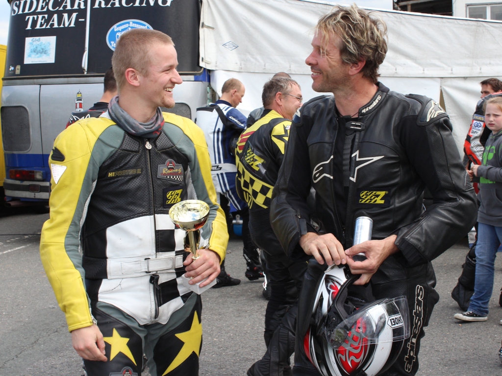 Nachdem ich aus der Kombi draußen war sind wir erstmal was Essen gegangen. Die Essensversorgung in Schleiz war erste Klasse. Dadurch dass die FIM Sidecar World Championship auch ihre Läufe an diesem Wochenende in Schleiz hatte, wurde entsprechend auch etwas geboten. Nach dem Essen ging es hinter die Tribüne am Buchhübel, denn dort war wie eine kleine Messe aufgebaut. Und das ganze mit Bierwagen und -zelt sowie Live Musik. So ließ sich der erste Tag doch sehr gut ausklingen. Und da wir Samstags mit unserer ersten Dauerprüfung erst um 17 Uhr dran waren, brauchten wir uns auch keine Gedanken um die Uhrzeit machen ;-)