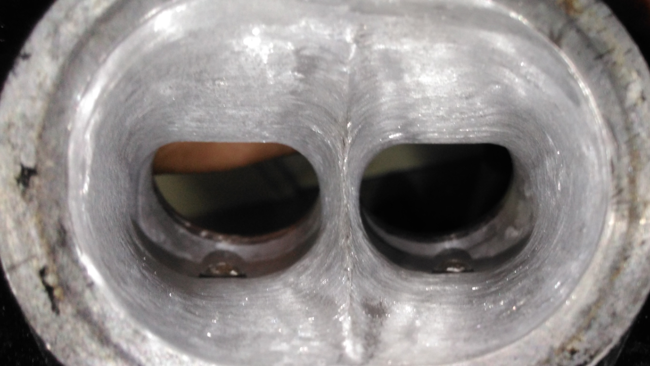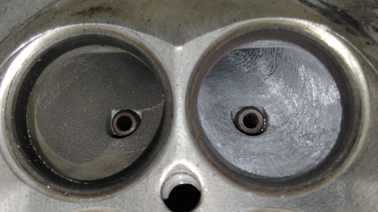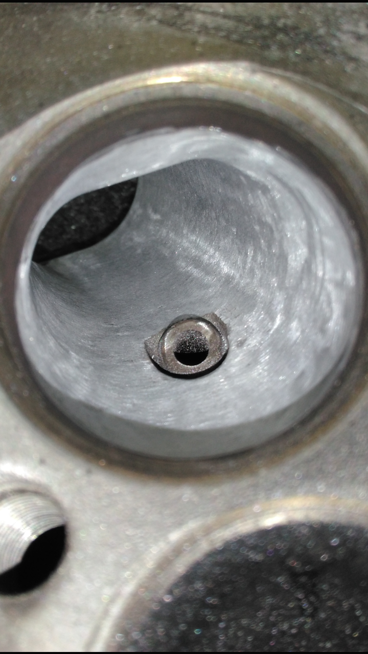 Kanäle weiter bearbeitet und noch besser geglättet. Ventilschaftdichtungen, Grat an den Einlassventilen entfernt und Ventilsitze geschliffen.