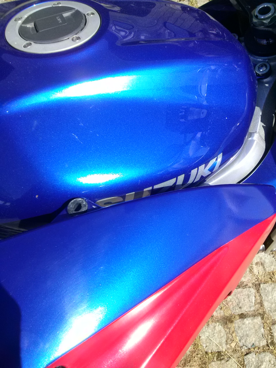 Die Farbe ist auf jeden Fall schick. Echt eine Alternative, zum halben Preis. Mit meiner Arbeit bin ich nicht ganz so zufrieden. Beim Bugspoiler ist mir beim Klebeband abziehen eine Ecke Lack mit abgegangen, also nochmal nacharbeiten. Beim Kotflügel musste ich wegen einem Kratzer den Originallack bis zum Plastik durchschleifen. Mit dem Ergebnis, dass das Lösungsmittel der Spray-Lacks mir den alten Lack angelöst hat und der sich dann gerunzelt hat. Das hab ich aber in den Griff bekommen. Ich habe einfach in den Warmluftstrahl eines Föns gesprüht, der hat die Farbe auf die richtige Stelle geblasen aber dabei das Lösungsmittel schnell genug verdunstet das es den Lack nicht mehr lösen konnte. Das hat dann eine Sperrschicht gebildet und ich konnte nochmal normal drüber gehen.
