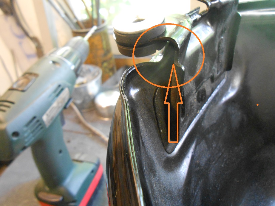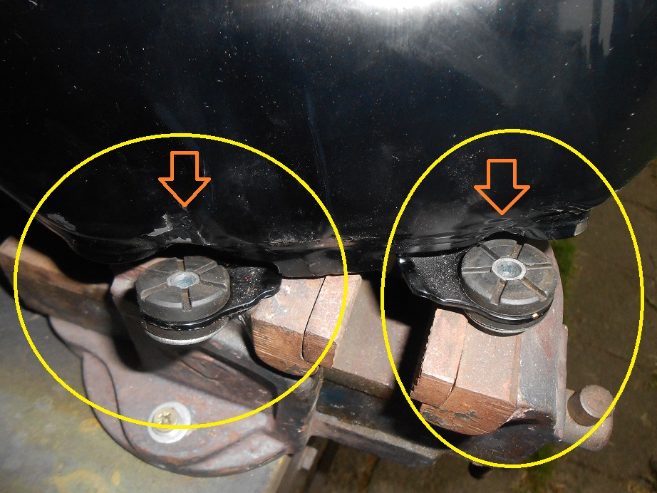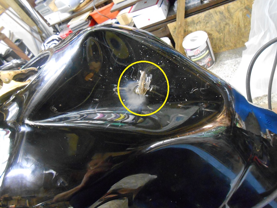 Ich habe den Tag ein wenig ausgebeult, nach der alt bewährten Methode 8O --> eine große U-Scheine senkrecht anpunkten, aber Vorsicht, dass man kein Loch in das dünne Tankblech macht :!: :evil: