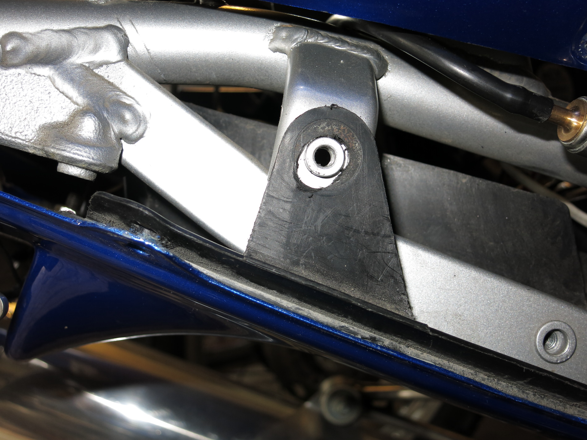 Durch die zusätzliche HUV stand die Heckverkleidung ziemlich unter Spannung und die Spaltmaße zur ebenfalls neuen Soziusabdeckung waren auch zu groß. Um dieses Problem zumindest teilweise zu umgehen, habe ich mit einem Dremel die Halterungslöcher der originalen HUV etwas vergrößert, sodass alles etwas nach oben rutschen kann.