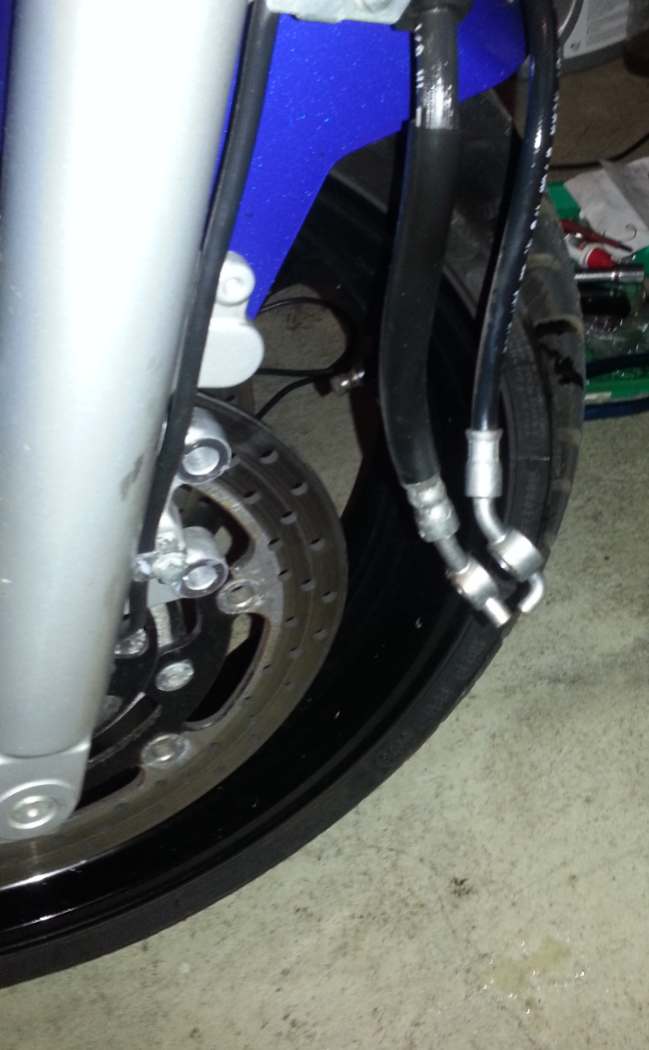 Zu erst die Flüssigkeit aus dem Bremszylinder gesaugt danach die Bremsleitungen an den Bremssatteln abgeschraubt und durch gepumpt danach Bremsattel abgeschraubt und erstmal alles ordentlich geputzt.