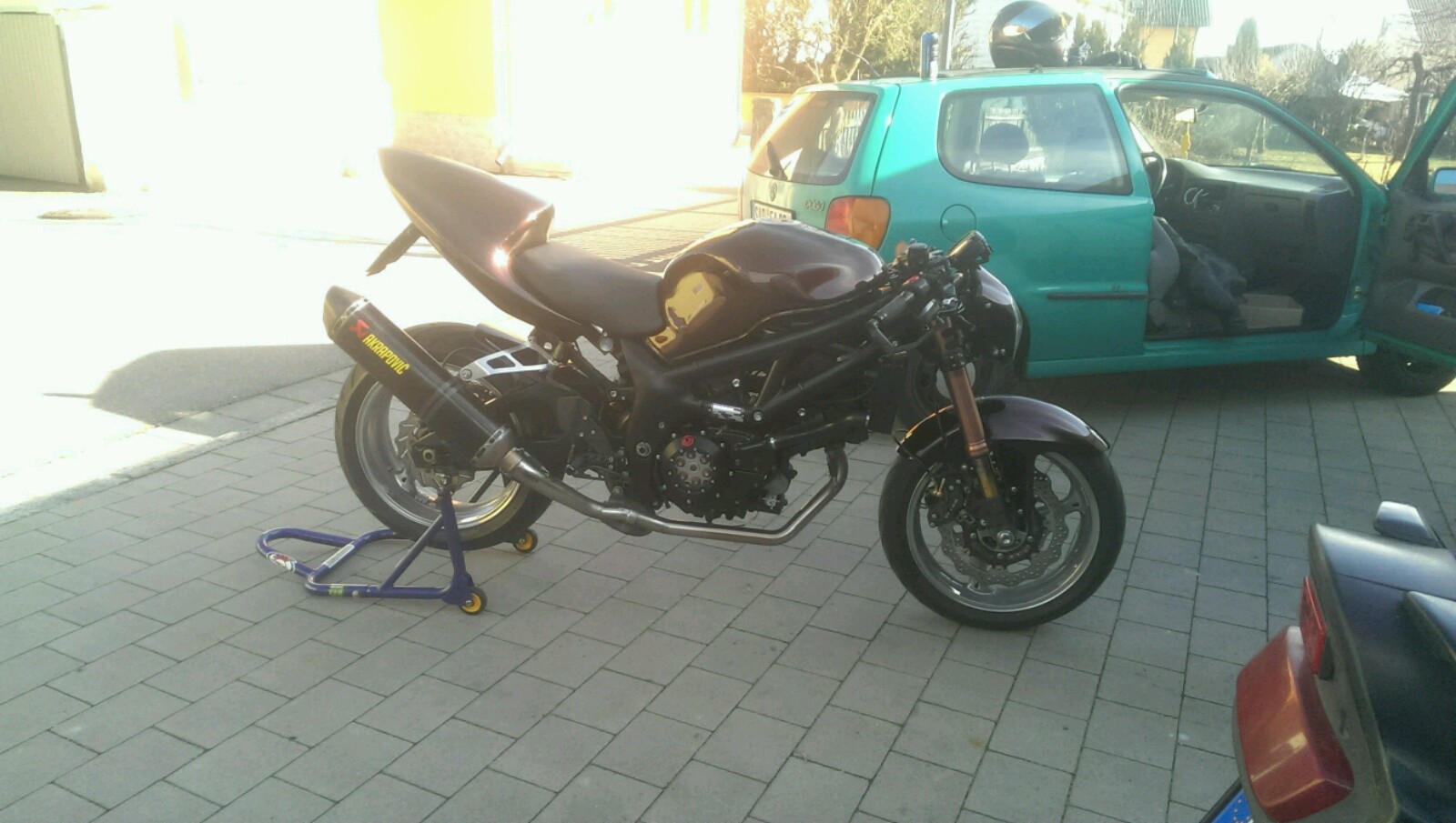 Nachdem ich die ersten Kilometer hinter mir hatte wollte ich doch mal wissen wie der Hobel bei Volllast geht. Also die nächste Gerade gesucht und Gaaaaaasss! Hat aber nicht viel gebracht. Ab 7500rpm wurde es nicht schneller, nur lauter. Wieder zur Garage und Kupplung penibel eingestellt.