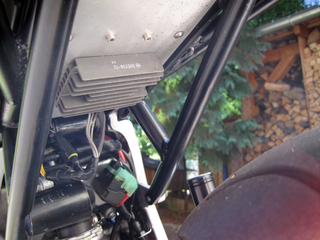 Die wird allerdings noch weichen... ich lasse mir Frästeile anfertigen, die Auspuffhalterung und Soziusrastenaufnahme vereinen.