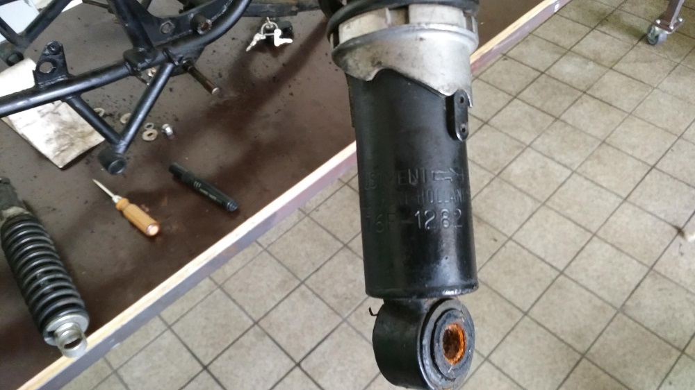 So auch hier geht´s langsam weiter……. Rahmen und Schwinge Sind wieder Ausgelagert und auch die Koni´s sind wieder seit heute in Bearbeitung. Nach Durchsicht aller Teile ist es technisch mit Reinigen und Abdichten getan. Hauptproblem werden die oberen Aufnahmen werden. Bisher ist noch alles möglich. Die Federn selbst werden nur mit Balistol gereinigt und gut ist.