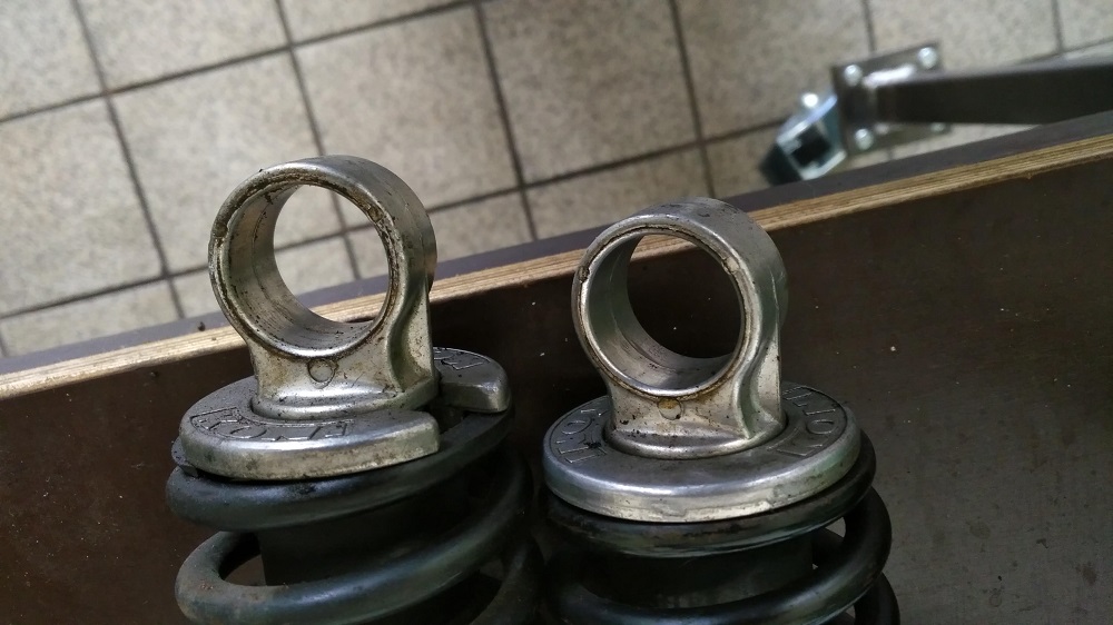 Ich mit mir selbst nur am Kämpfen ob ich den nun versuchen soll mir passende Ersatzteile für die Aufnahmen zu besorgen oder ob ich unter Zuhilfenahme der Drehbank und passenden Materialen mir diese selbst zu „schnitzen“. Mir schwebt förmlich Hülsen aus VA und die Gummis aus Polyurethan mit 90° Shore Härte. Diese Kunststoff habe ich mir schon für eine spätere Verwendung am Kawa Motor besorgt. Anderseits soll man ja alle Teile der Federbein noch über die Nachfolge Firma Ikon bekommen………….
