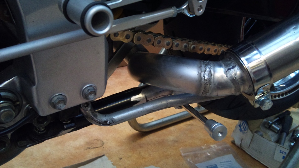 Ich hatte versucht, den Bogen am Ständer umzuformen. Also an Originalstelle lassen. Ging net, passte einfach net mit dem angefertgten Halter.