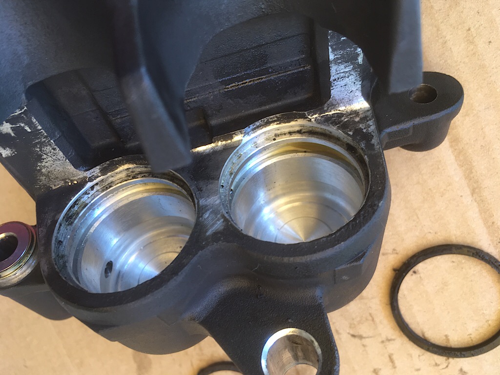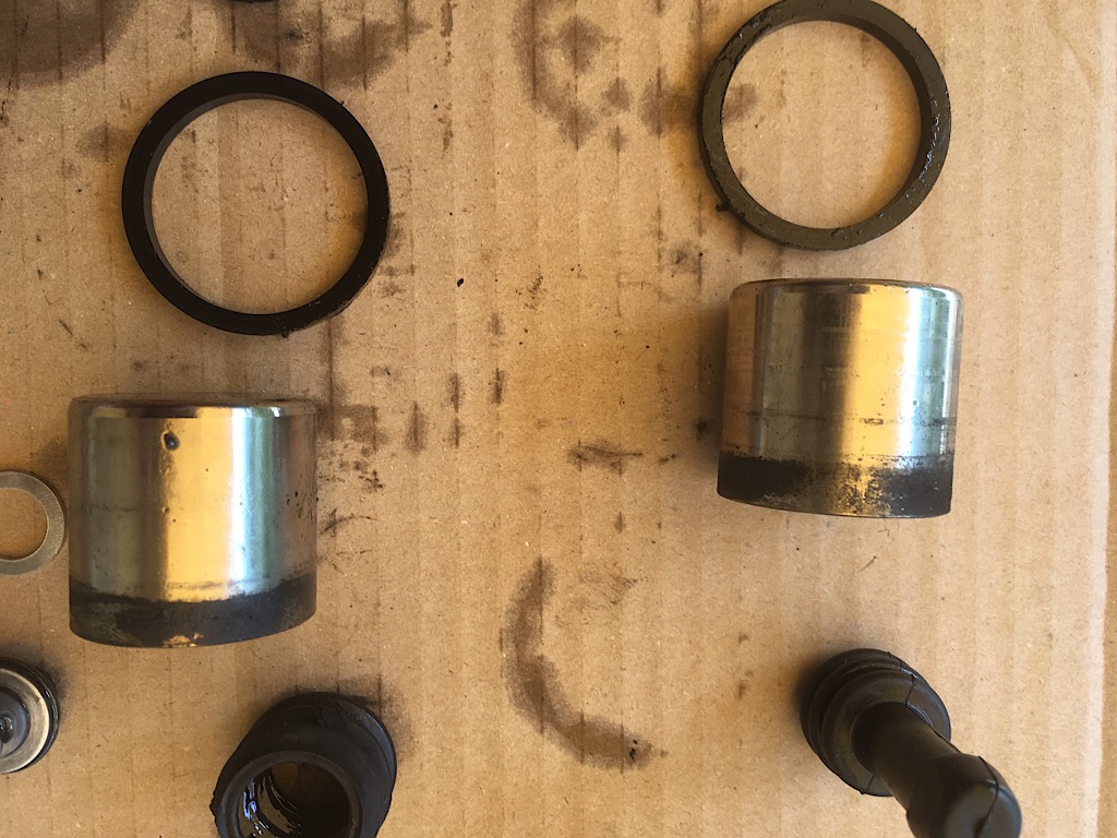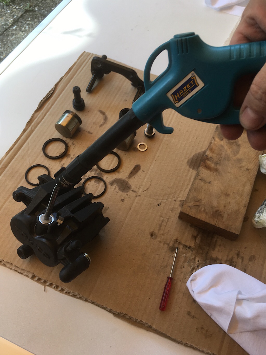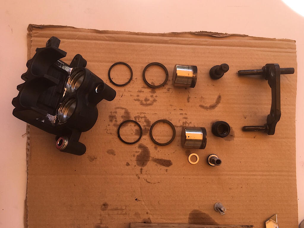 So heute mal weiter gemacht. Den linken vorderen Bremssattel demontiert, zerlegt, Kolben poliert und die Nuten gereinigt. Da ich ja schreibfaul bin und Bilder mehr als tausend Worte sagen hier die Bilder.