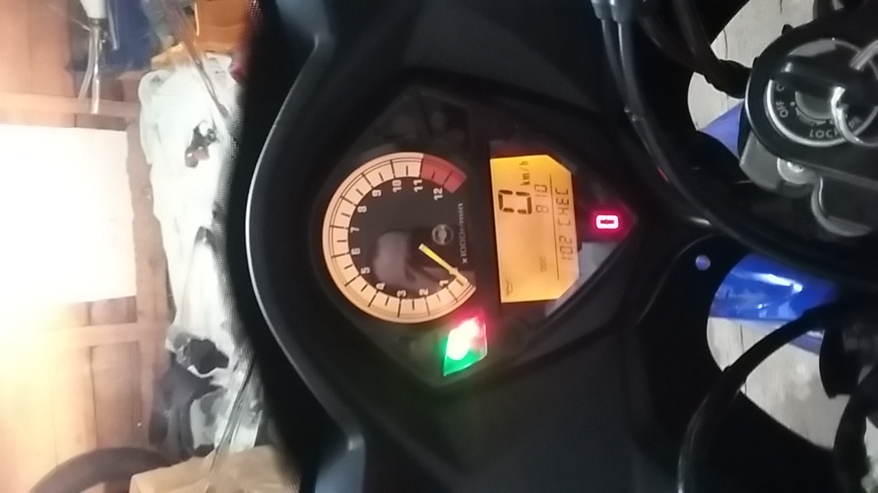 Danach hab' ich die Batterie wieder eingebaut und geschaut ob Blinker und auch vorallem der Tacho mit der Ganganzeige funktionieren.