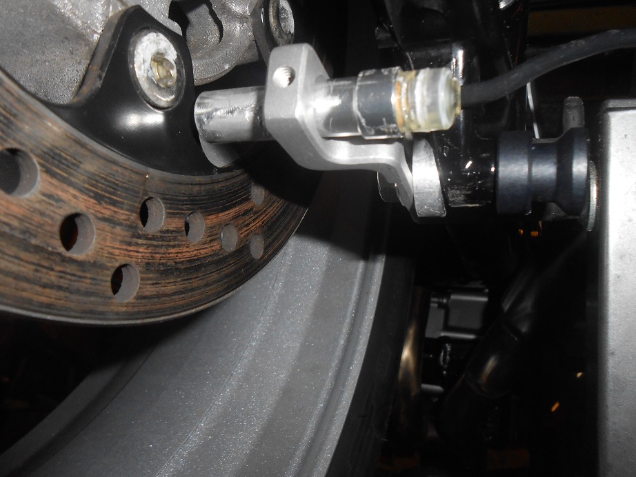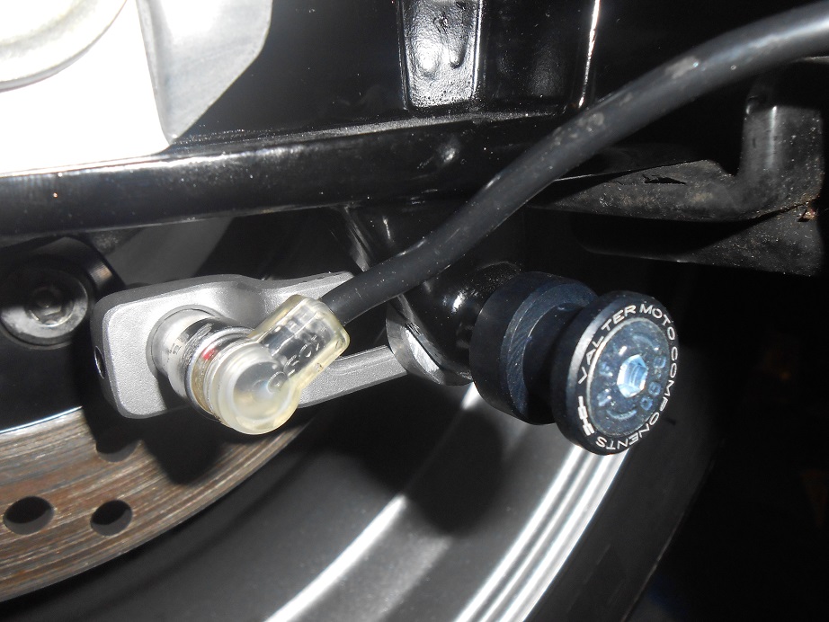 -dann habe ich angefangen eine Aufnahme für den Tachosensor zu bauen, das ist ein aktiver KOSO-Sensor ( Danke Schaf ;) bier ) . Ich möchte das Signal am Hinterrad an der Bremsscheibe abnehmen. Das fällt das nicht so auf und ich kann die Leitungen "unsichtbar" an der Schwinge langführen (so mein Plan :mrgreen: )