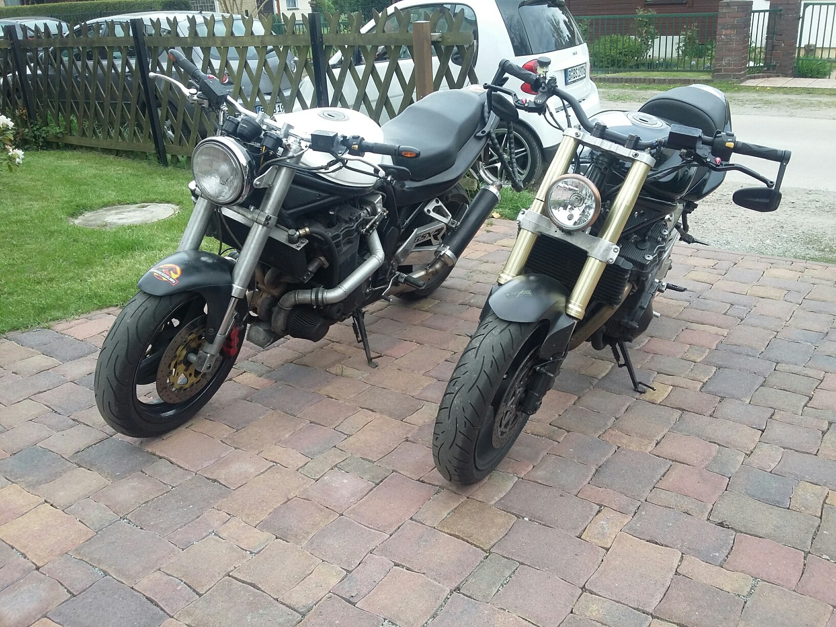 Da kannst dann den Seitenständer abbaun, steht eh von alleine und spart Gewicht :P