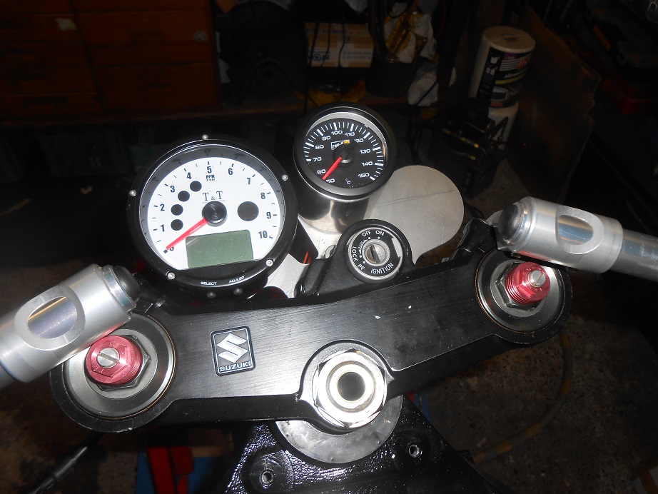 Viel Kleinkram gemacht am WE. Öltemp-Instrument an dem Instrumentenhalter angebaut und die Hinterradfelge geschliffen (keine schöne Arbeit :evil: :evil: ) das Alu unter dem Lack ist nicht sehr glatt, da mussten sehr viel geschliffen werden, um eine schöne Oberfläche zu erzielen -- es muss aber noch poliert werden. Der Felgenstern wird lackiert, so ist es beschlossen (von Hardy und mir!) .