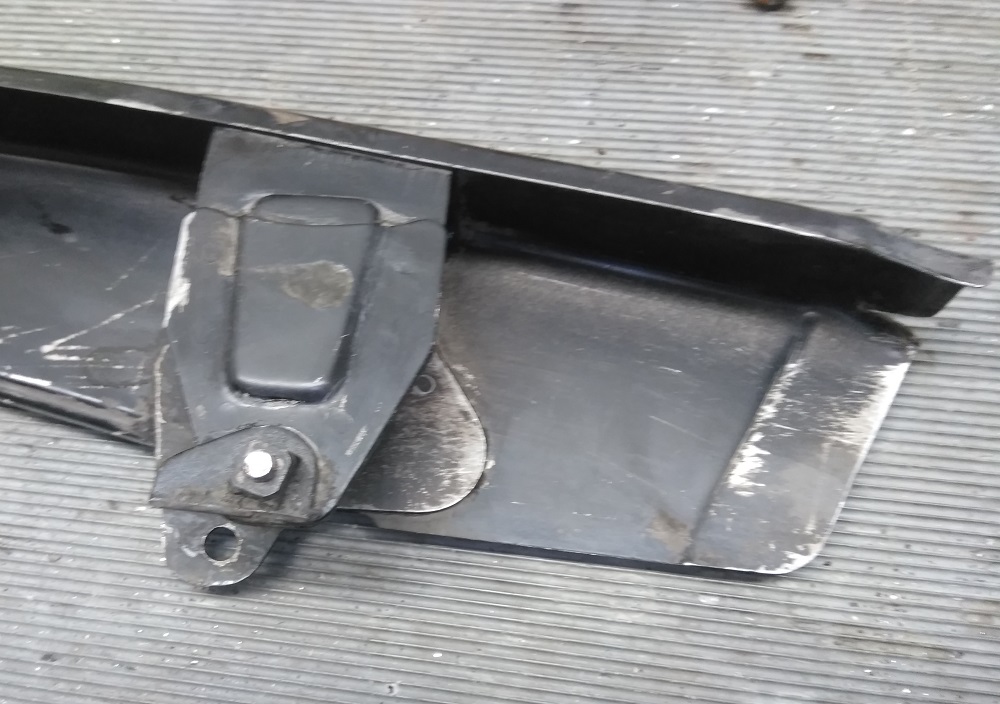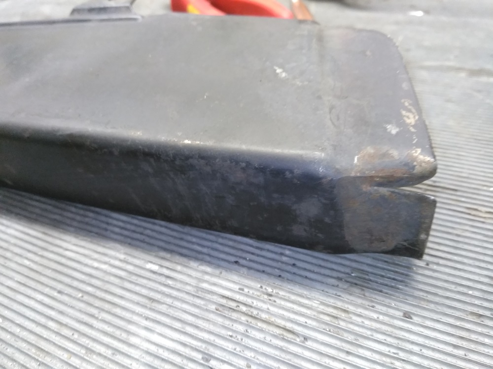 Auch habe ich die letzten Teile zum Strahlen/Pulvern vorbereitet. Nix Wildes aber bei Kettenschutz erlebte ich eine böse Überraschung nach der Reinigung. Vom alten Kettenfett verdeckt fand ich eine kleine verschraubte Lasche. Als ich den Kettenschutz mal an die Schwinge hielt ……. Scheiße die Lasche war ein abgerissener Halter welcher an der Schwinge verschweißt war. Nur gut das die Schwinge Fertig zu Einbau parat liegt. Jetzt kann ich im Prinzip nur eine neuen Halter bauen und diesen dann auf der Schwinge kleben um diesen Haltepunkt wieder benutzen zu können. Irgendwas ist ja immer……. Und dann war der KS auch noch vorne Beschädigt oder besser Eingerissen. Das hatte die Kette schon mal Kontakt mit den KS. Genau betrachtet hatte ich auch noch zu wenig Material zur Verfügung um ein wenig zu schweißen. Jetzt machte ich es mir recht Einfach und Schnitt geschwind mit der Flex 2 cm von KS ab die Kante ein wenig entgraten und Fertig. Irgendwas ist ja immer…….