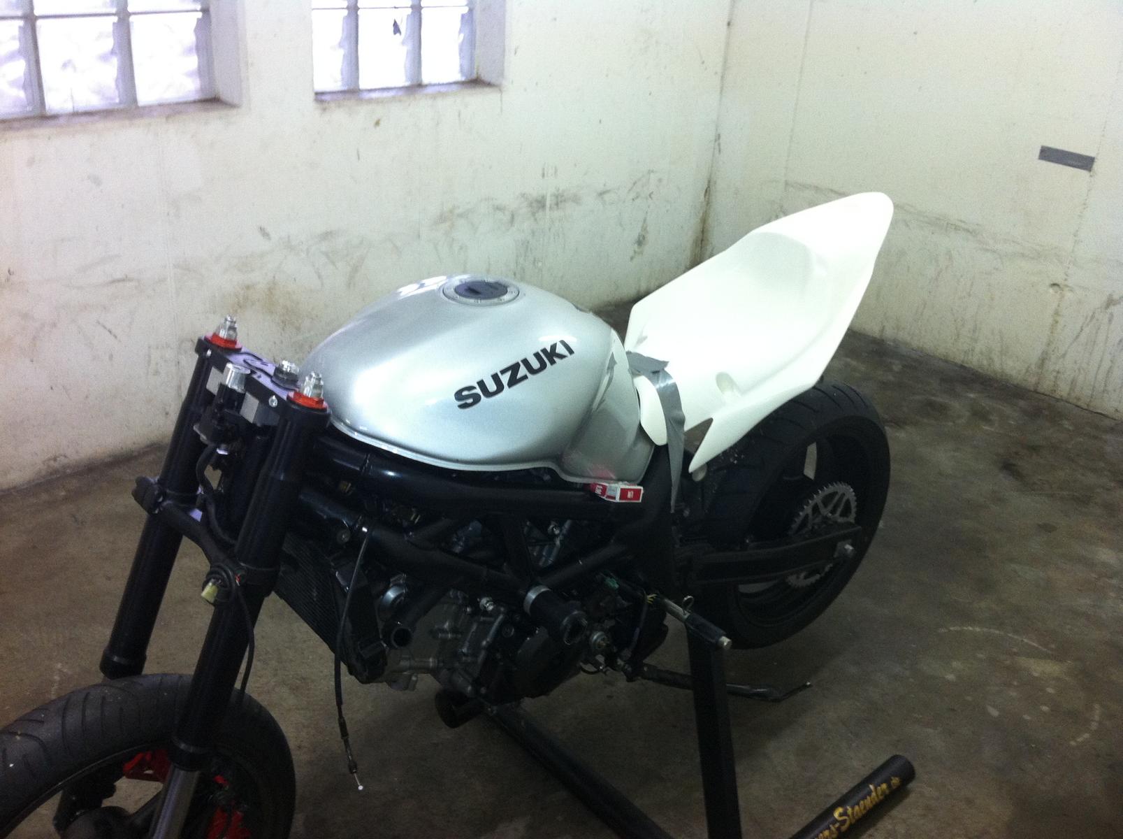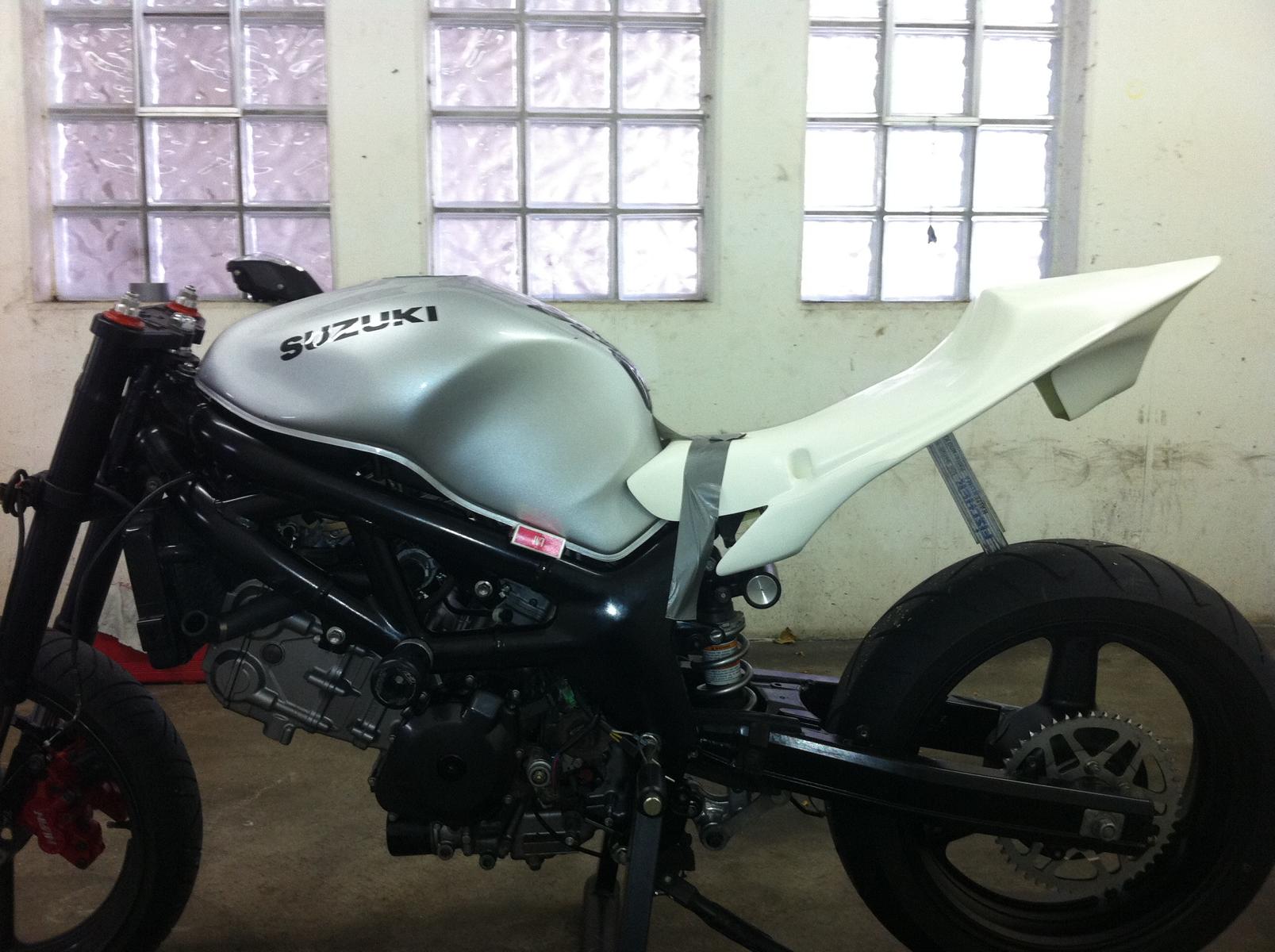 Du könntest ein r6 Heck probieren, das sieht ähnlich aus und is schmaler. Zudem hat es nicht die Aussparungen für den Auspuff.