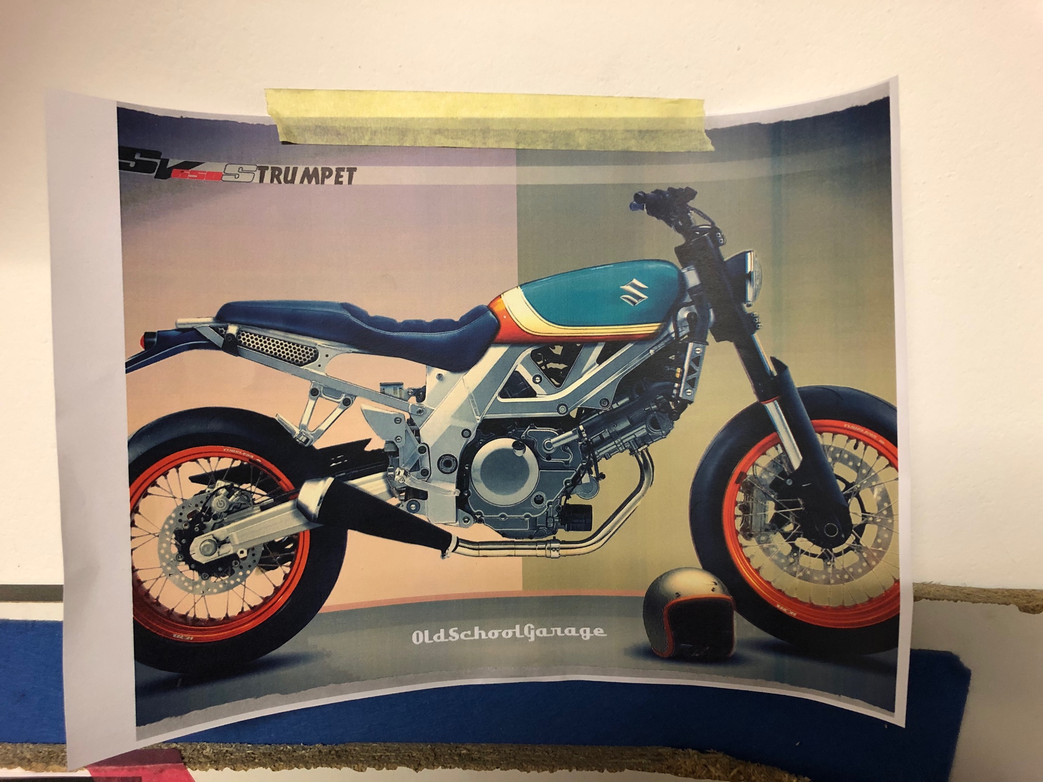 Laut Auktionsbeschreibung hat der Eimer "the looks and comfort of a softail chopper" und "handles superbly" - und wird noch mit einem orangenen Motocross-Kotflügel ausgerüstet, damit der neue Besitzer auch wirklich die häßlichste SV des ganzen Planeten sein eigen nennt.
