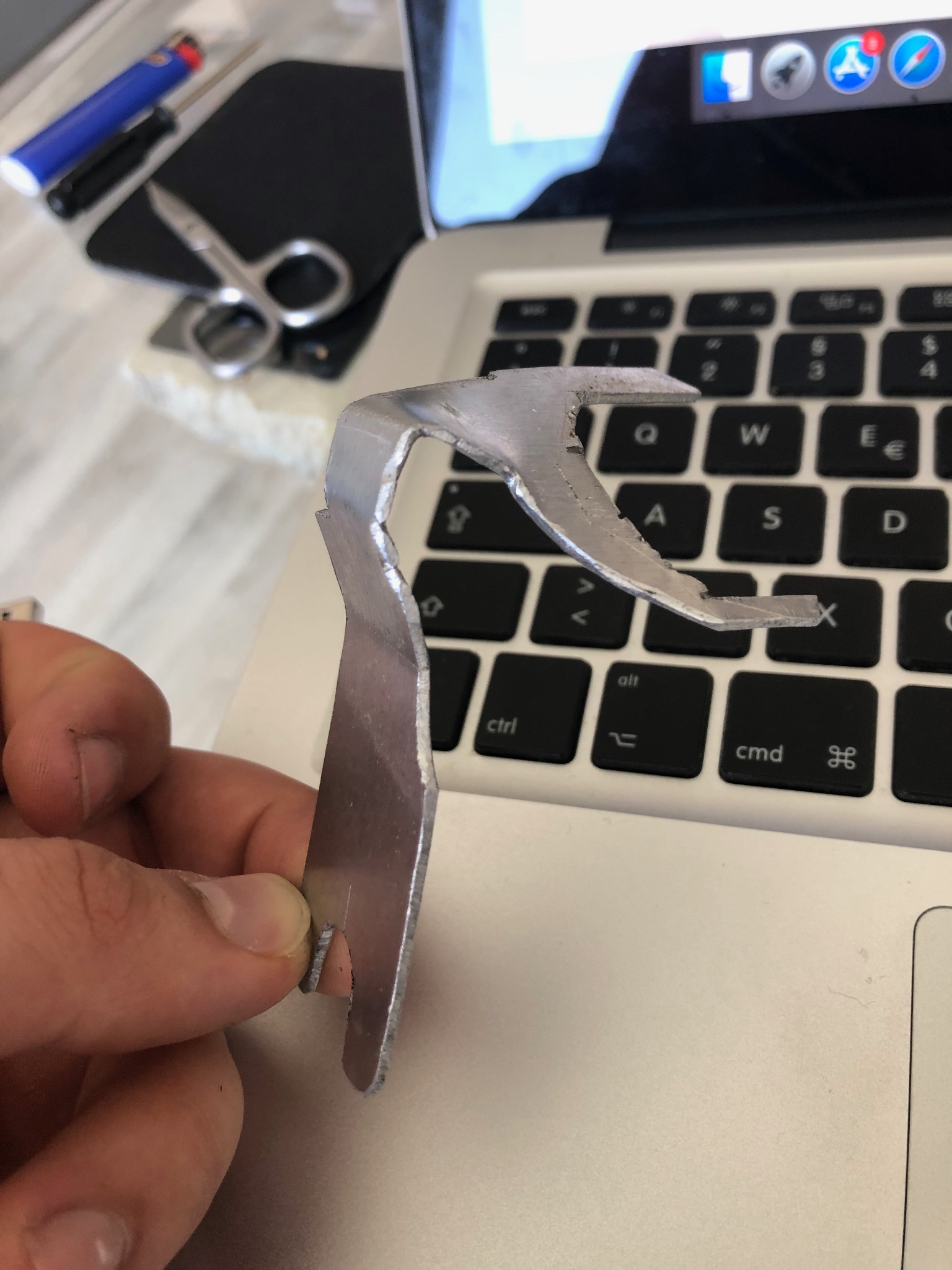 Das komplizierte war, dass die Halterung einen Bogen um alle Leitungen der linken Lenkerseite machen musste und auch beim Einschlagen genug Freiraum vorhanden sein muss
