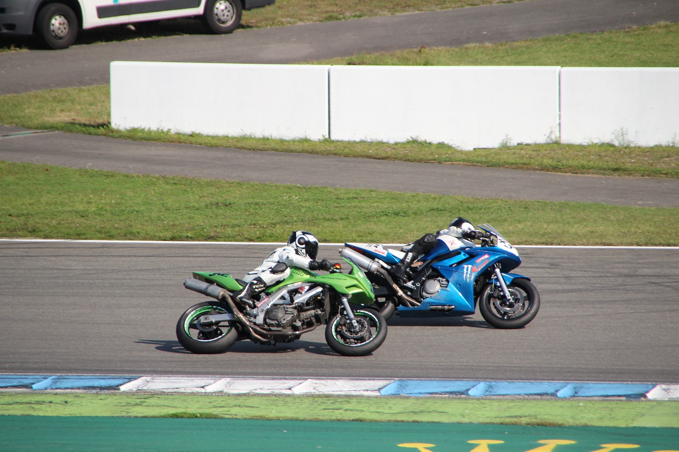 Im Rennen konnte ich das Tempo zu Beginn auch mitgehen und kämpfte mit René um Platz 2. In der zweiten Runde allerdings wollte ich zu früh zu viel und kam Ende Start / Ziel auf die Innen-Curbs, wo mir dann das Vorderrad weg geklappt ist und ich gestürzt bin. Bin sofort wieder aufgesprungen und zum Motorrad gerannt. Glücklicherweise war nur die rechte Fußraste in Mitleidenschaft gezogen worden und ich konnte weiter fahren. Leider lag ich nun aber auf dem letzten Platz (27.)