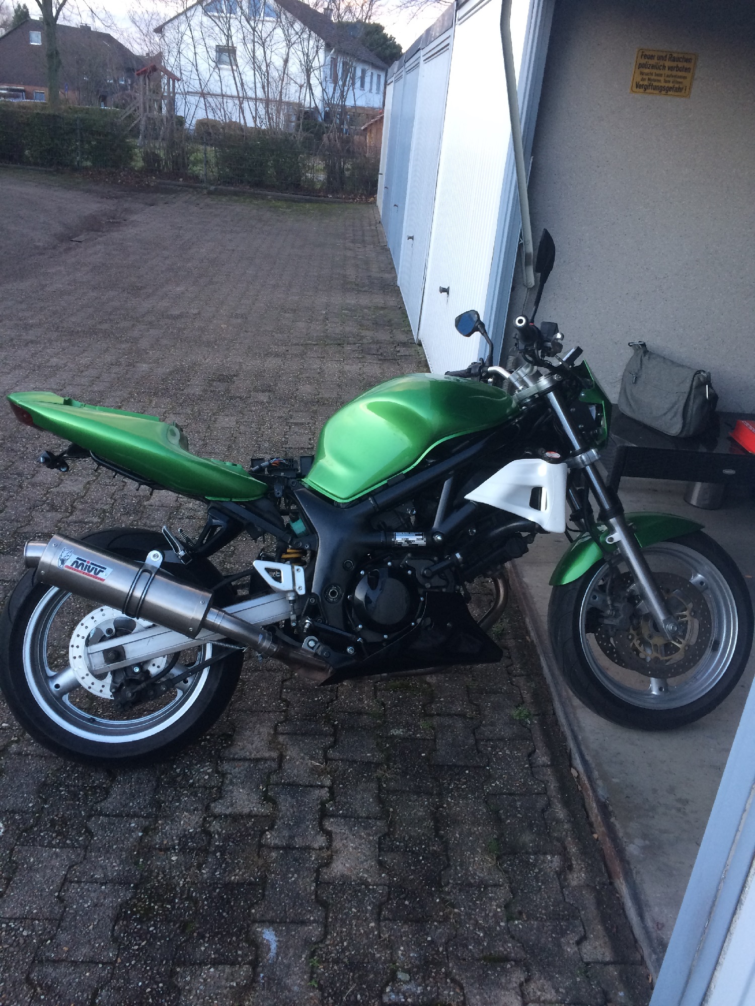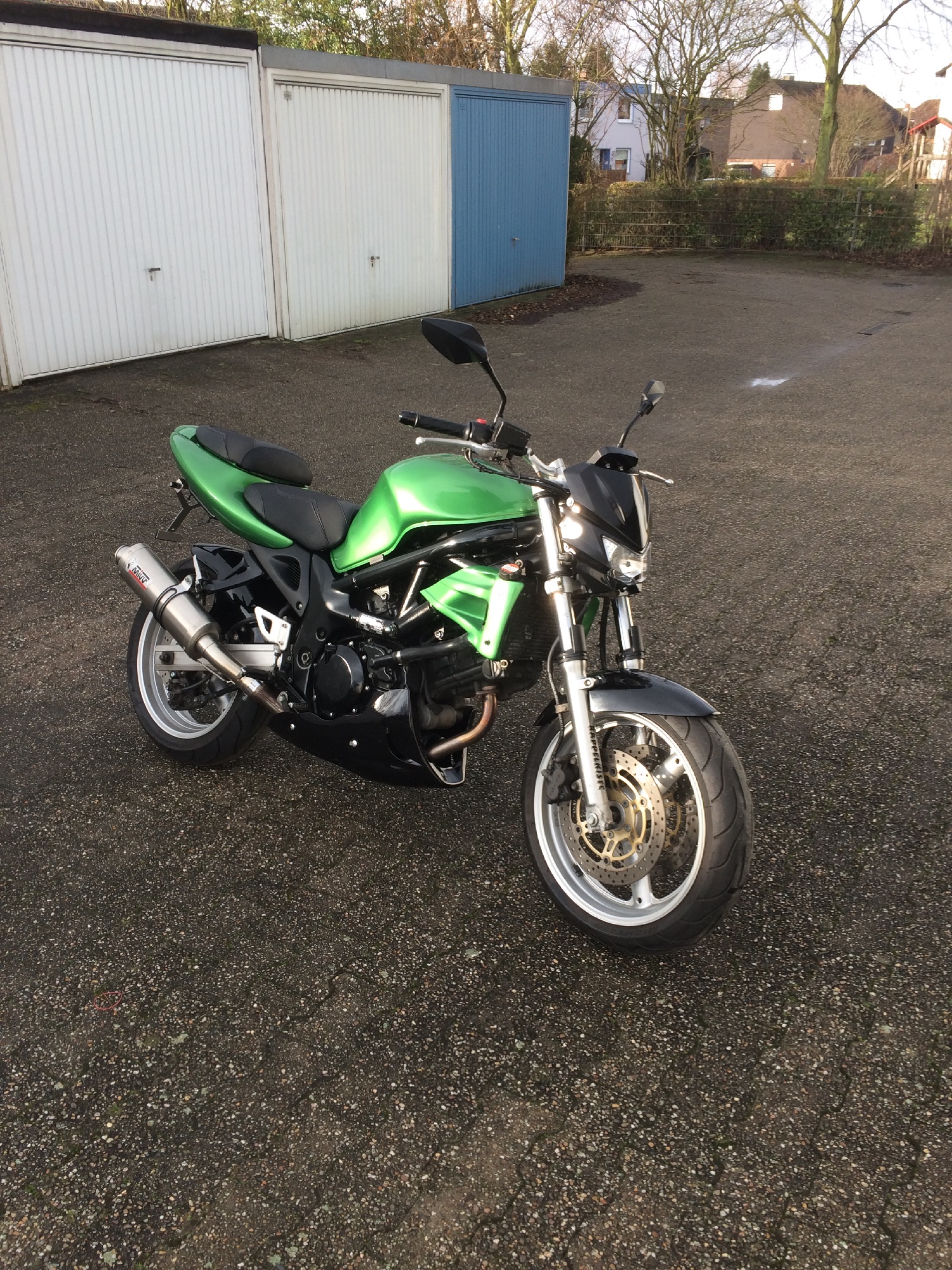 Der Auspuff war leider auch nicht zugelassen- Irgendein Scorpion mit DB-Eater Atrappe ;-). Nach langen überlegen ( Die Auswahl an Auspuffanlagen ist ja Recht groß), war ich fest entschlossen mir einen IXIL Extrem in schwarz zu kaufen. Doch da kam dieses 185€ Schnäppchen zwischen meine Finger. Da musste ich nich lange drüber nachdenken knapp 400€ gegen 185€ :wink: