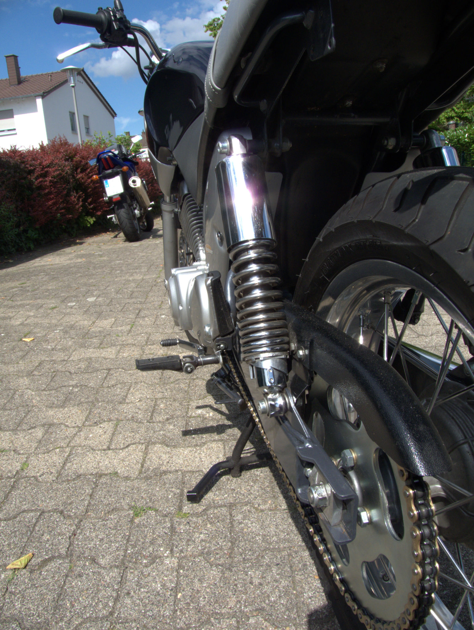 Wer aufgepasst hat, hat auch bemerkt, dass auf diesen Bildern das originale Federbein nicht mehr da ist.