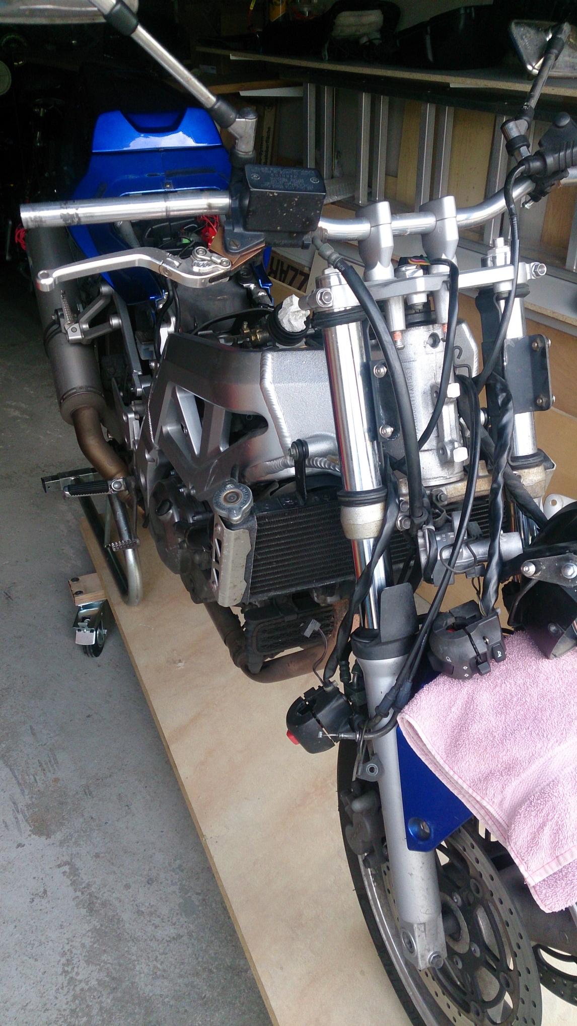 Andererseits war es die Gelegenheit ein paar Sachen zu optimieren und so wanderten eine LSL Streetbar (gekürzt), klappbare VTrec Brems- und Kupplungshebel, neue Lenkerenden und ein klappbarer Schalthebel and die Maschine.