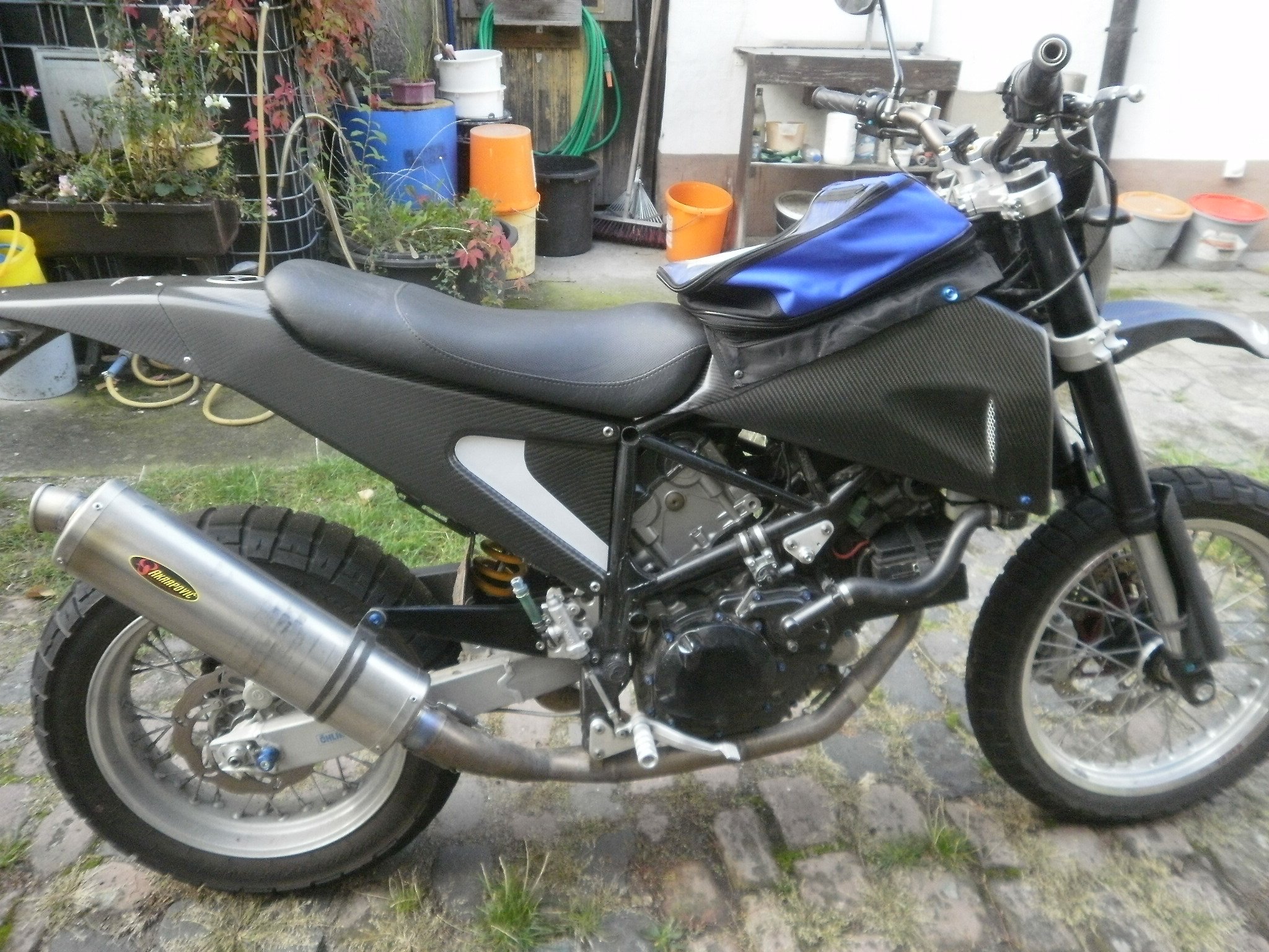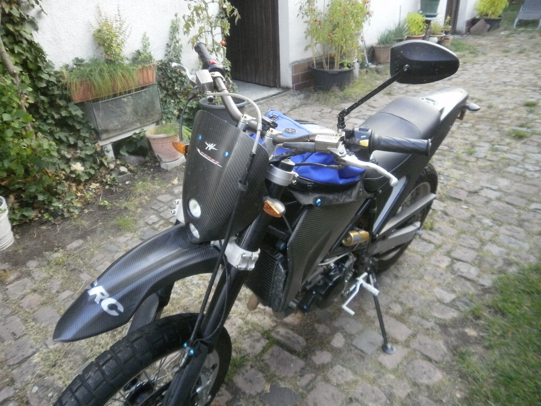 Sowas aus ner Tausender im Supermoto Stil gebaut. Mit nem kürzeren Heck ( wer braucht schon 'n Soziusplatz ) ,ne Einarmschwinge , den Endtopf anders verlegt und fertig ist 'n Hammer Kurvenjäger Moped.