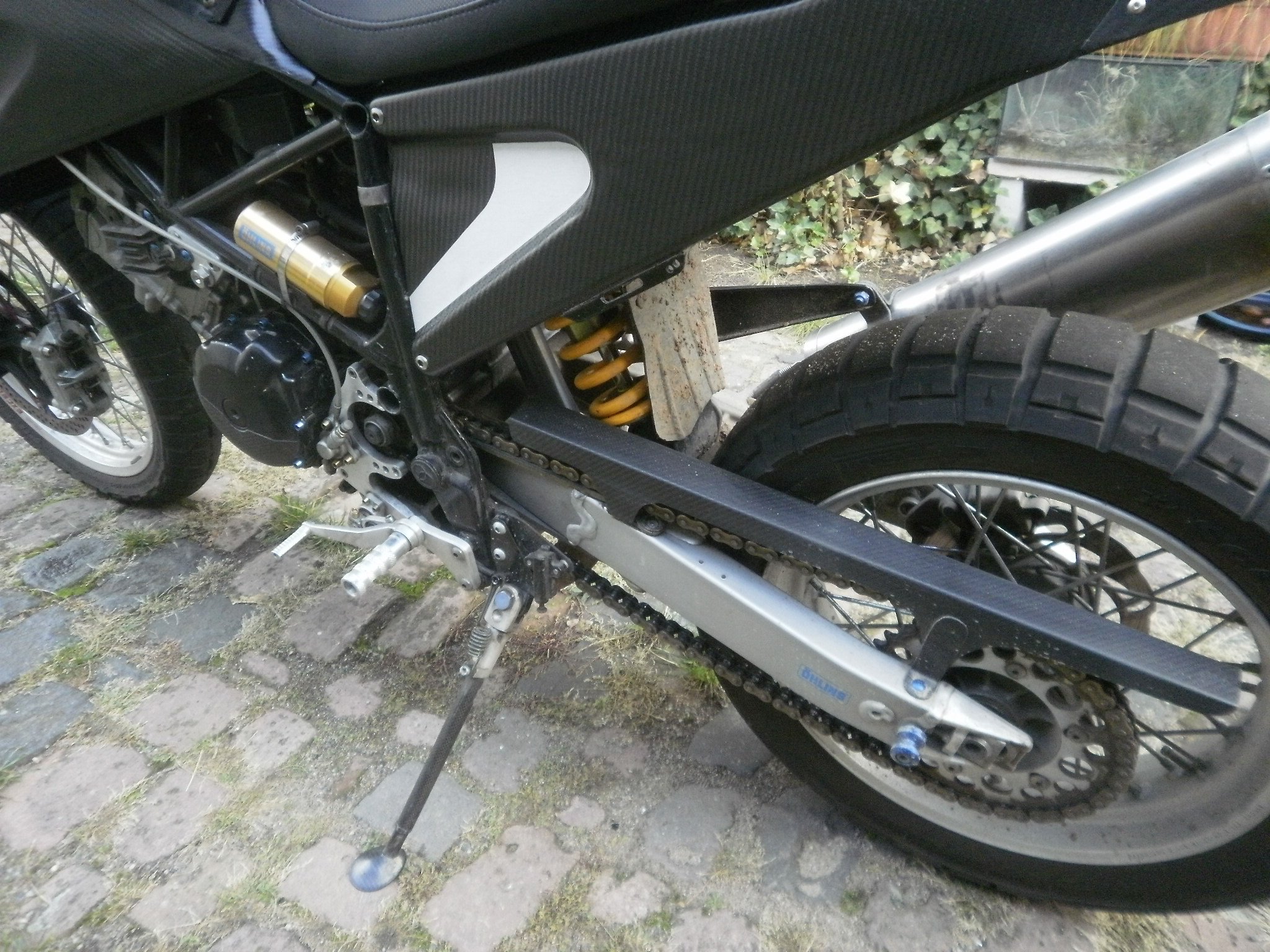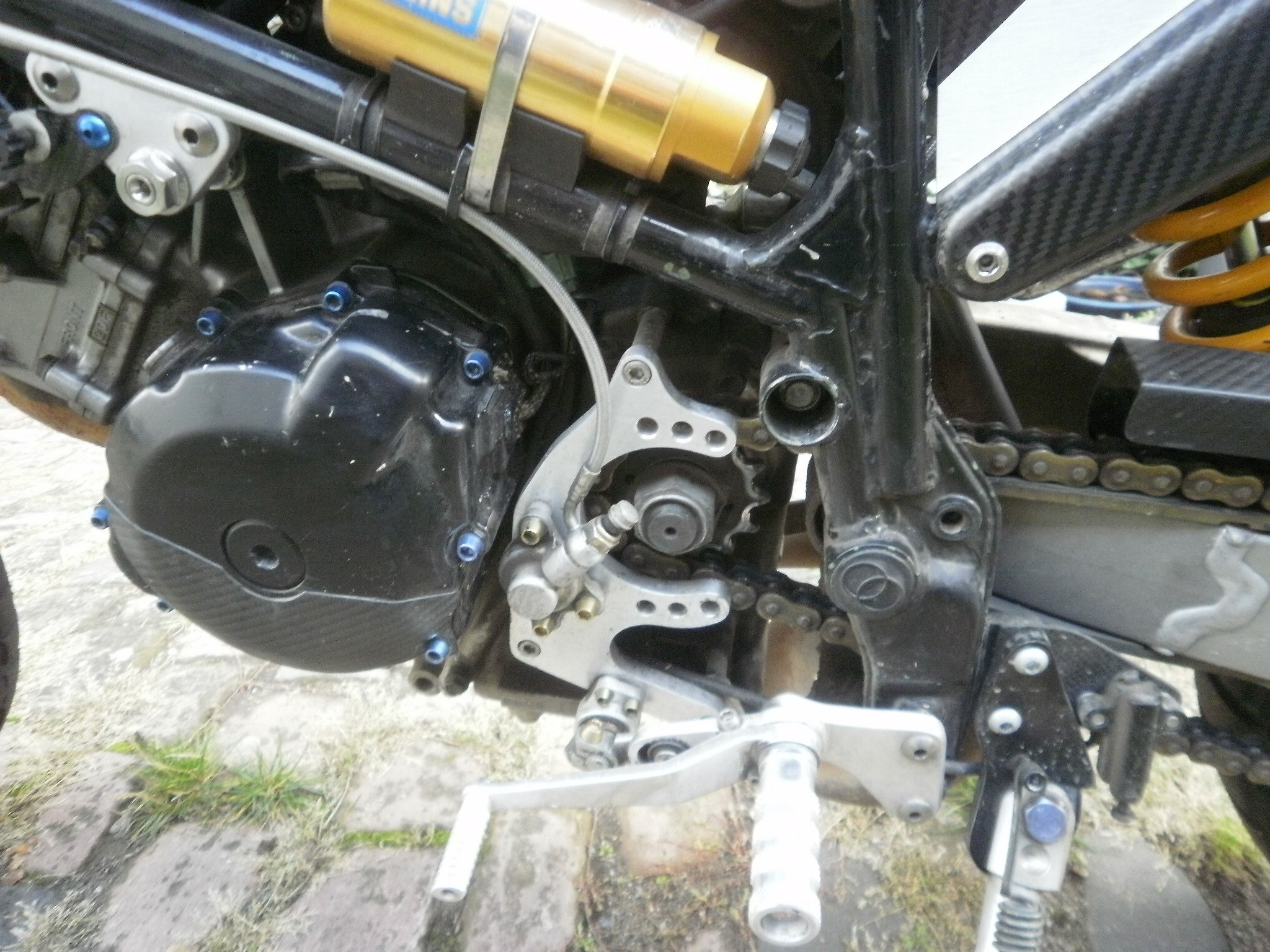 wiegt nur 7,0 kg, die schwinge (einer gilera) ist direkt ohne umlenkung über ein