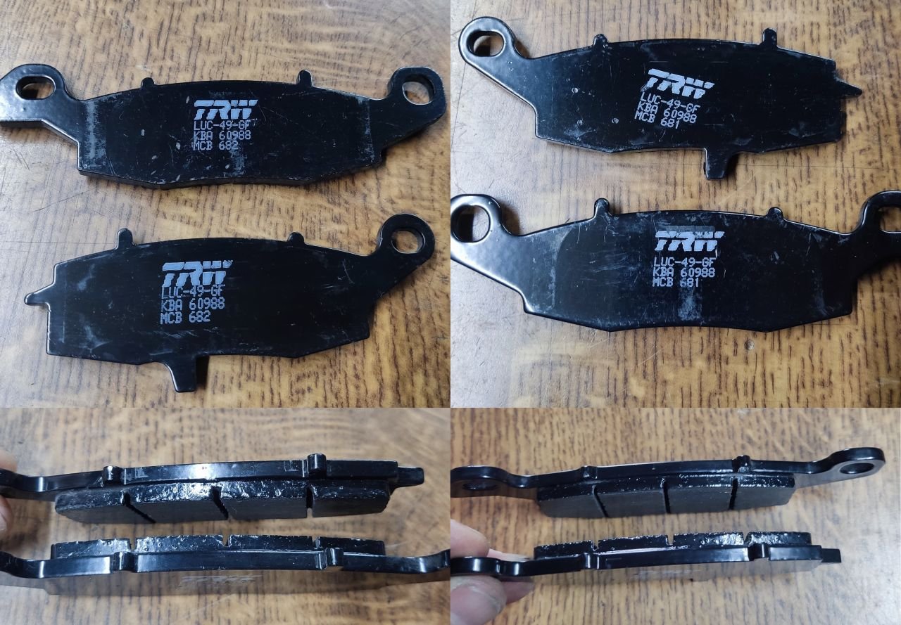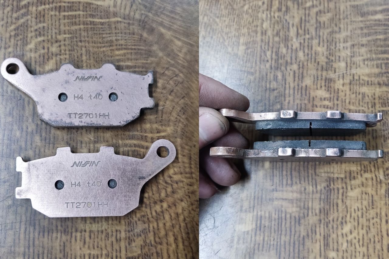 Vorne sind organische Bremsbeläge von Lucas TRW verbaut (MCB 681(rechts) und 682 (links)) und hinten originale Nisin Beläge.