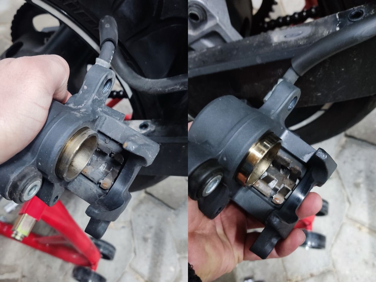 Alle Bremszangen einmal reinigen und anschließend die Bremsflüssigkeit wechseln. Die verbauten Bremsbeläge sind vorne wie hinten neuwertig.