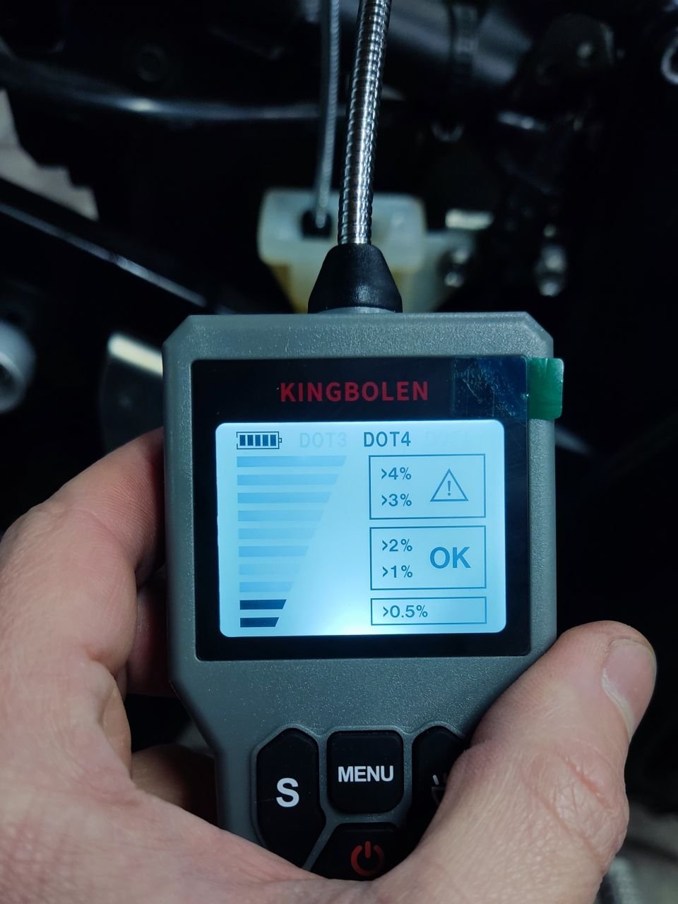 Bremsflüssigkeit hatte ich auch noch von TRW. Am Ende habe ich dann mal meinen Bremsflüssigkeitstester ausprobiert. Auch dieser zeigte dann an, dass alles OK ist :D :top: