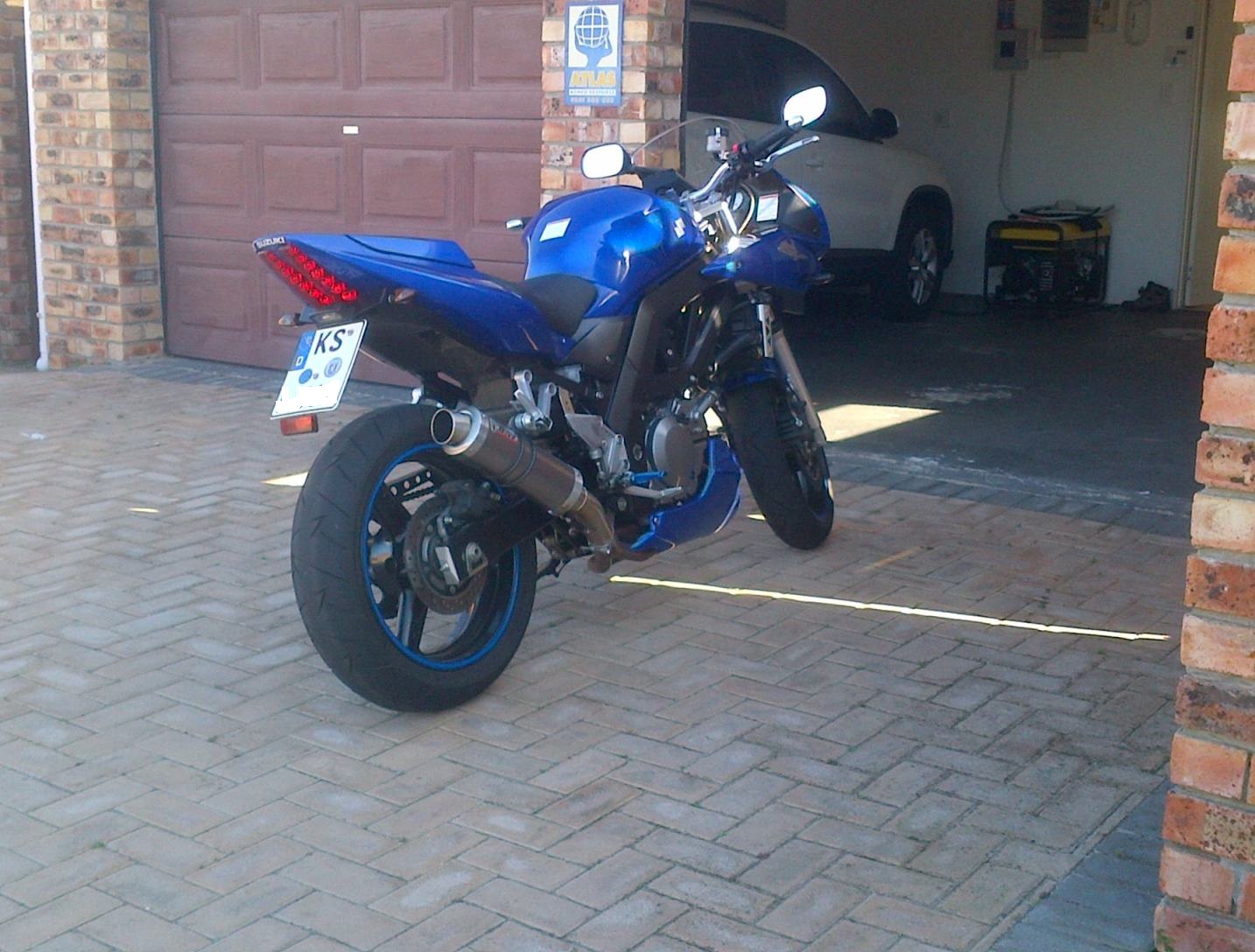letzten Donnerstag konnte ich sie dann endlich abholen. Es war kinderleicht, sie aus der Transportbox zu holen und sie hat auch keine Schäden erlitten. Sie ist auch sofort angesprungen und wir sind schön nach Hause gefahren. Dort habe ich sie dann erstmal für den südafrikanischen Verkehr umgebaut. Getreu nach dem Motto loud pipes saves lives, habe ich den DB killer dauerhaft entfernt. Der Sound ist echt super und man braucht sich keine Sorgen um die Rennleitung zu machen...