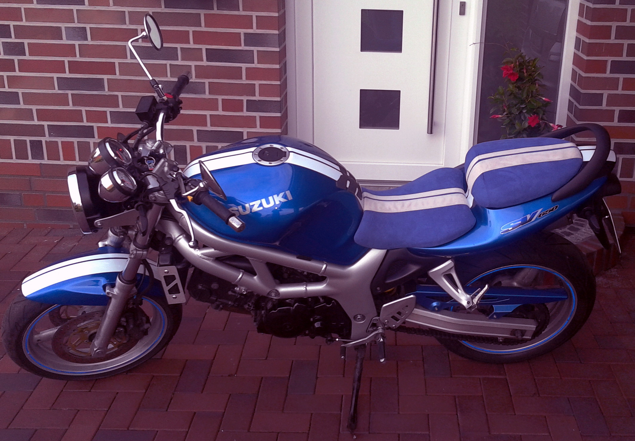 Ich war eigentlich ziemlich zufrieden mit dem "fast" Orginalzustand meiner SV doch mein Freund hat sich es nicht nehmen lassen ein bißchen zu interagieren und schwupps waren STreifen über den Lack gezogen und und die Sitze mit blauem und weißem Alcantara genäht. Zuerst war ich skeptisch aber inzwischen finde ich es gut. Wie ist Eure Meinung?
