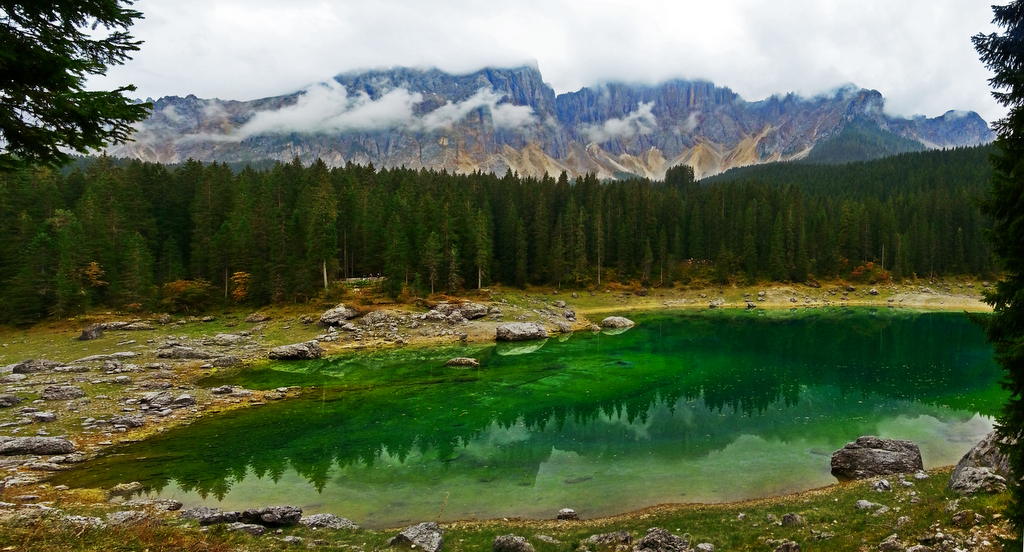 in bozen links abbiegen richtung prato isarco blumau und über san valentino zum carezza (karersee).