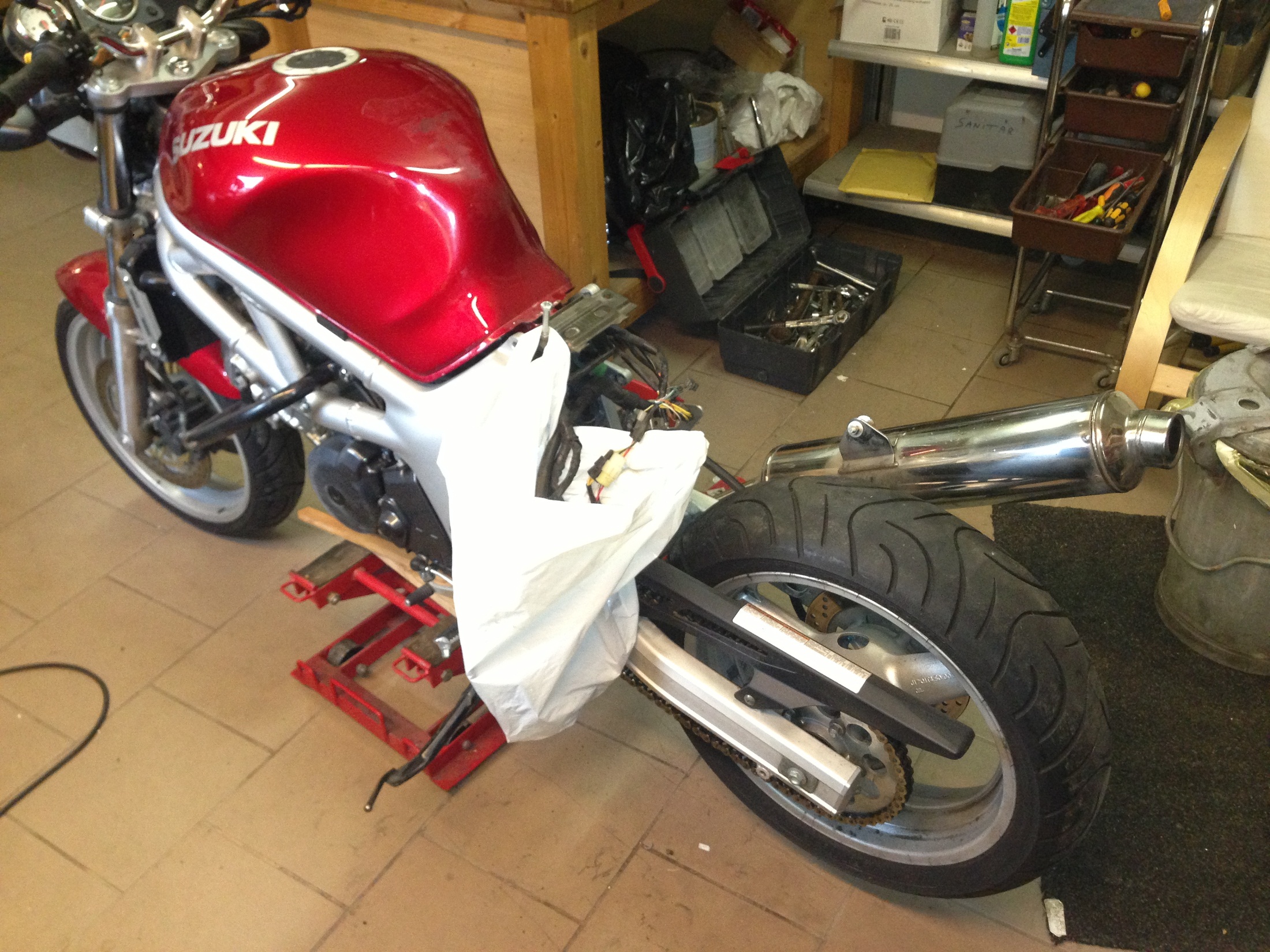 Hallo Freunde, da ich mir inzwischen sicher bin, das ich mein Vorhaben auch fertig bekomme mach ich hier mal einen Fred über meinen Umbau von ner Knubbel im Fahrschul-Style zum kleinen Bastard (halb Suzuki, halb Ducati) auf. Meinen Dank gilt allen, die diesen und ähnliche Umbauten hier zeigen und erklären, besonder Melle, dessen Bauplan mir und meinem Schlosser sehr geholfen haben.