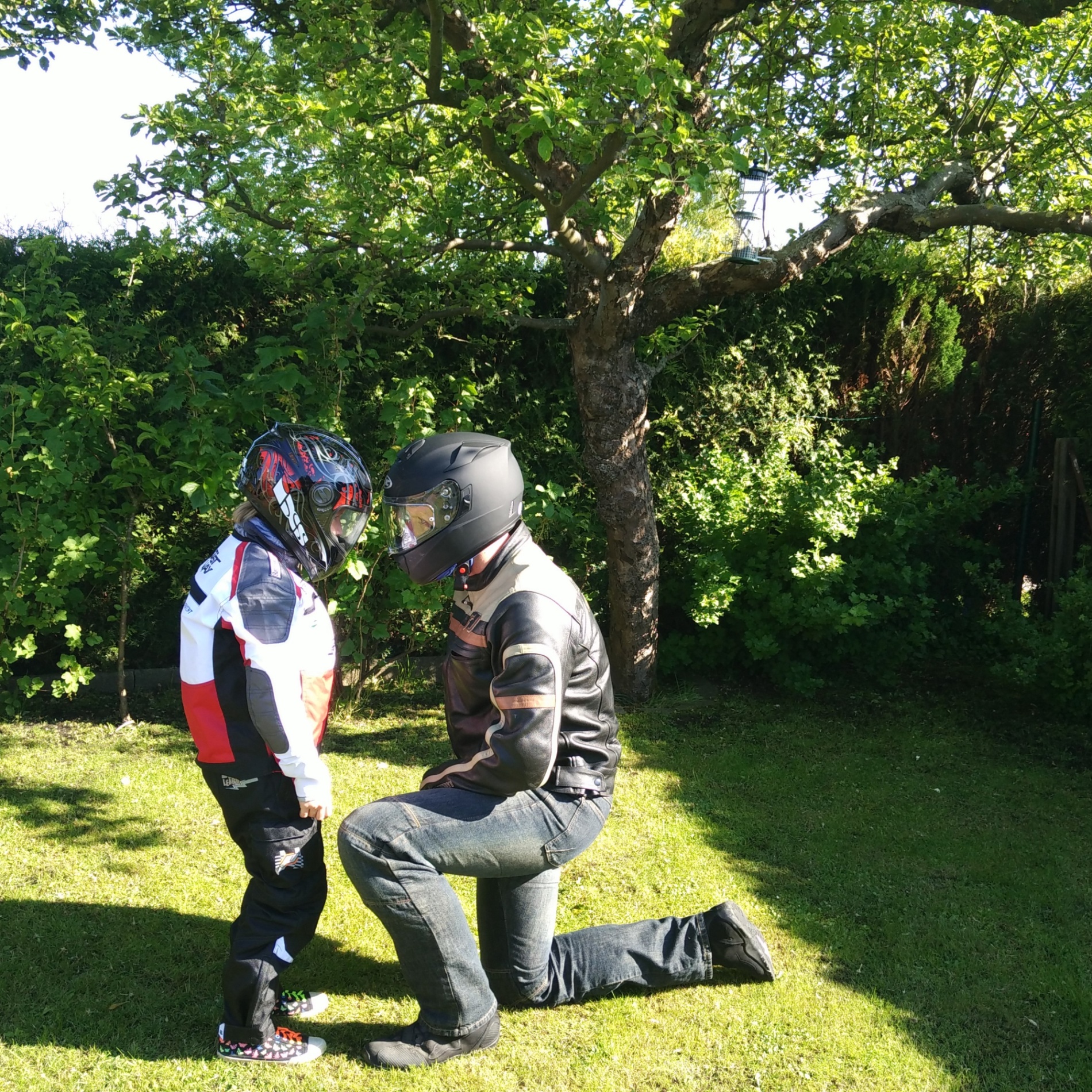 Hier mal ein Bild meiner SV und das zweite Bild eines neuen großen Fans... Endlich alles zusammen und sie kann und will mitfahren...