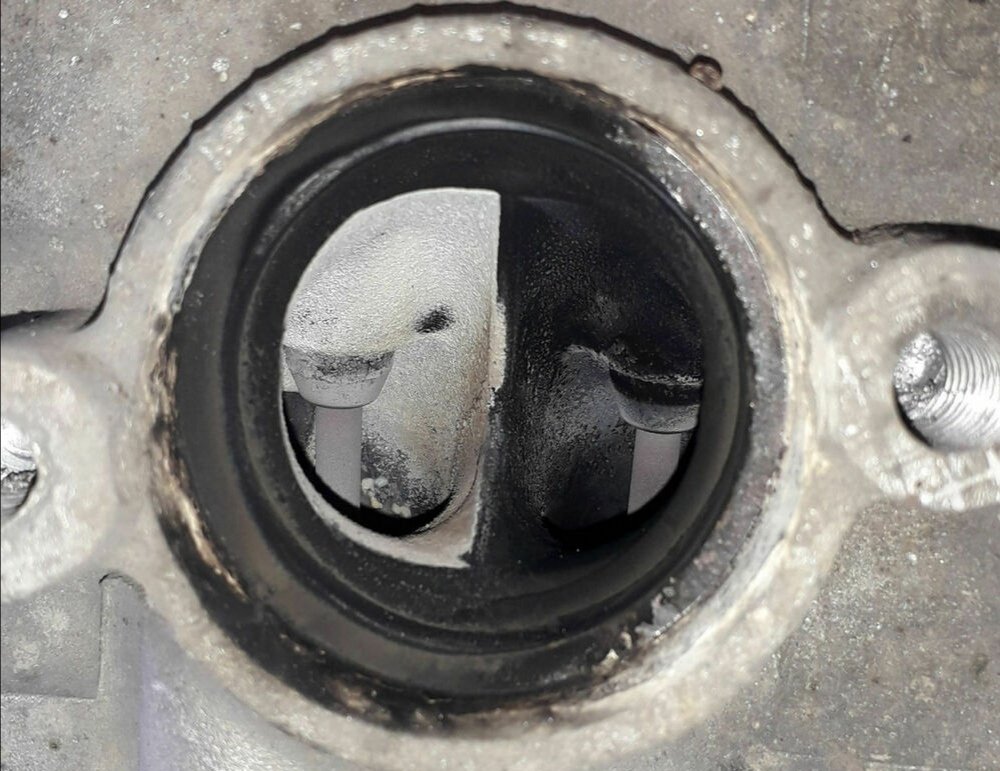 sehr eigenartig, die Theorie mit den undichten Ventilschaftdichtungen ist logisch, aber das ist meines erachtens nur im Einlassventil möglich, das er dann Öl zieht weil dort halt Unterdruck herrscht, bei einer kaputten Ventilschaftdichtung im Auslass herrscht Überdruck, da kann eigentlich kein Öl reingezogen und mit verbrannt werden. Oder was meint ihr, kann es eine art Injektor-Wirkung haben im Auslasstakt? Das Ventil selber ist ja auch hell auf dem Foto...
