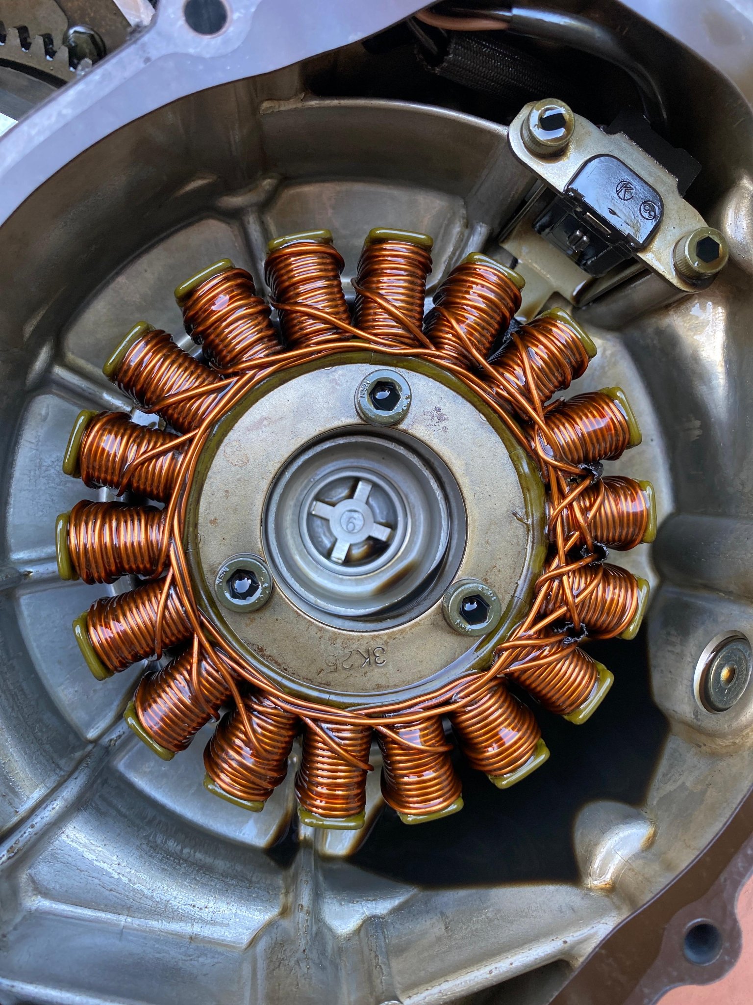 Sichtprüfung bei offenem Deckel → Wicklungen & Magneten optisch in Ordnung.