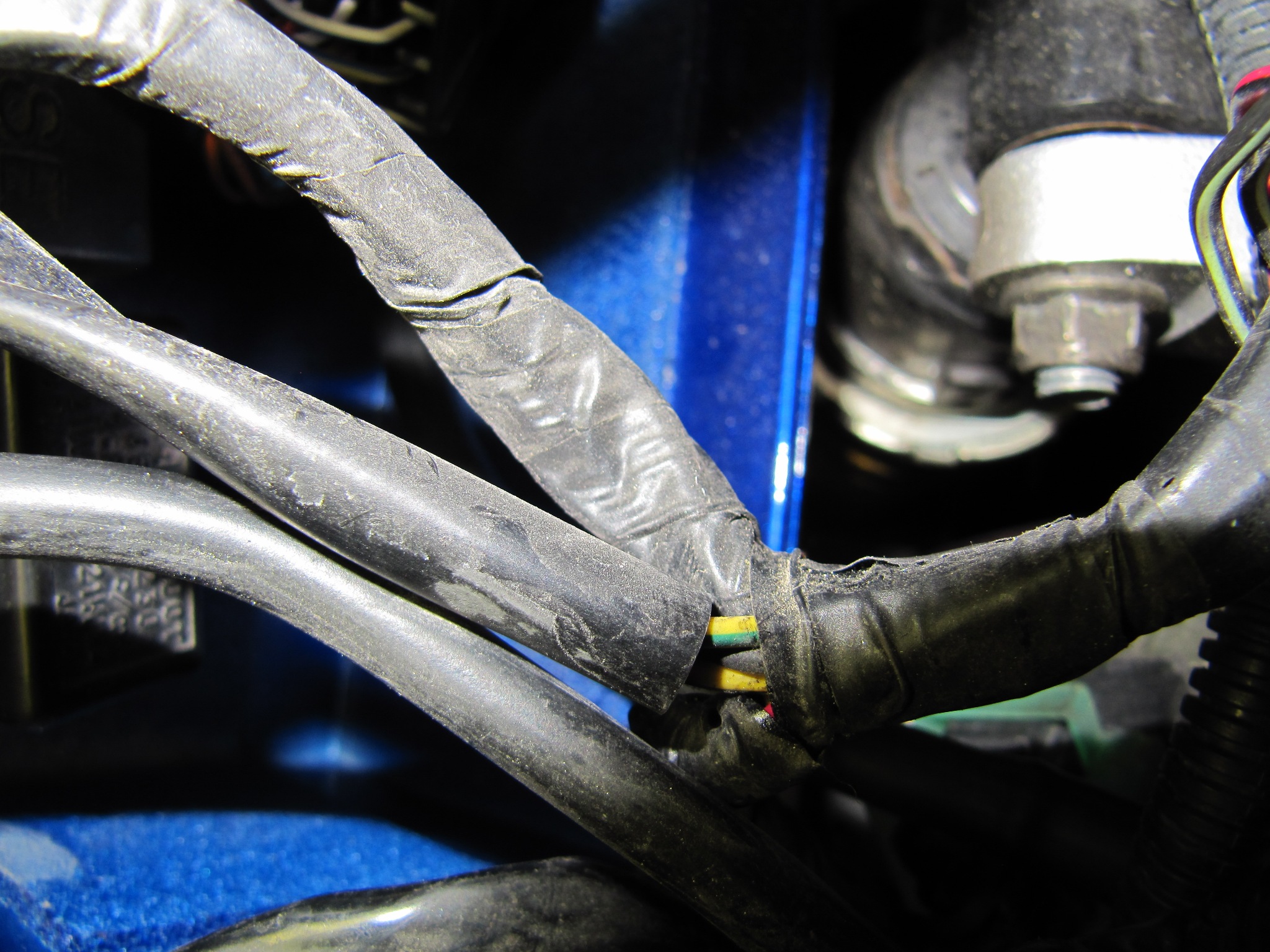 Nun habe ich aber noch ein weiteres Problem. Ich habe bei meinem alten Kabelbaum eine Leitung gefunden, welche bei dem neuen nicht vorhanden ist. Jedoch ist dieser Stecker kurzgeschlossen, wie man auf den Bildern erkennen kann: Es ist das mittlere Kabel, wo man die Kabel am Ansatz sieht. Die Kabelfarben sind Schwarz/weiß, gelb/grün und gelb/schwarz.