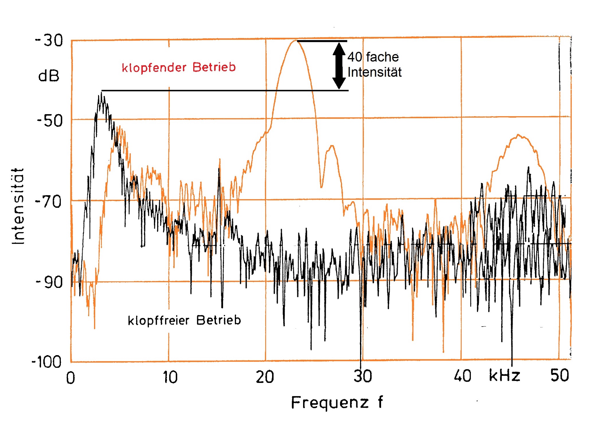 Ein klopffreier Betrieb bewegt sich unter -45dB, eine klopfende Verbrennung geht hoch bis -30dB