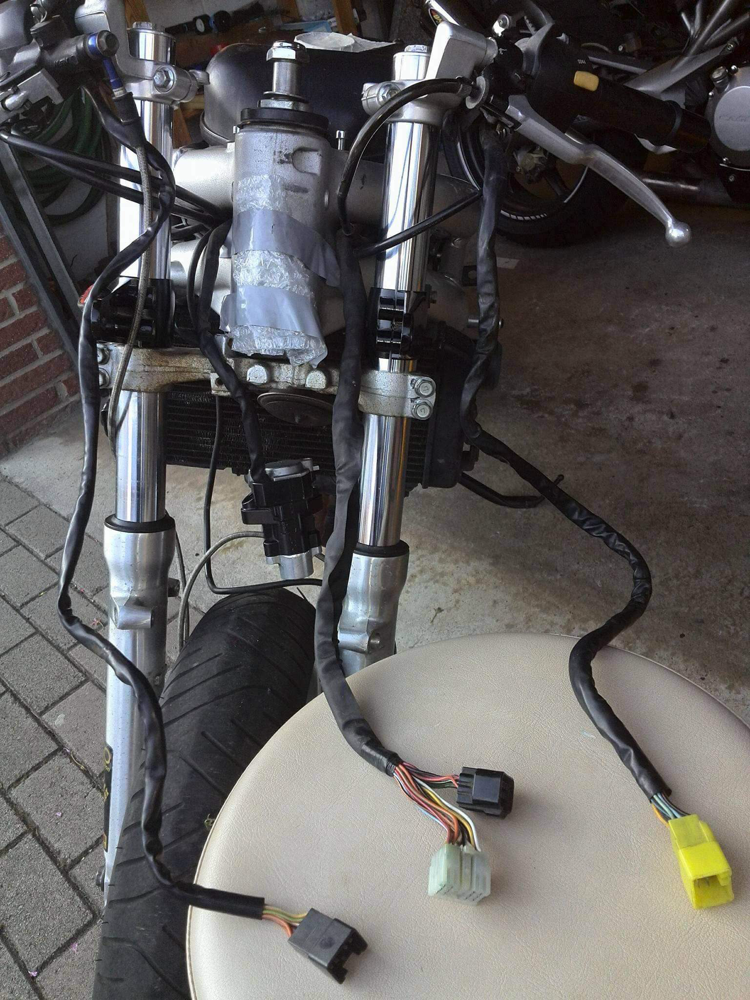 Ich bin gerade dabei die Kabelage meiner zuvor verkleideten SV 650 S '99 für den Umbau auf einzelne, runde Lampe, Blinker und Tacho anzupassen.