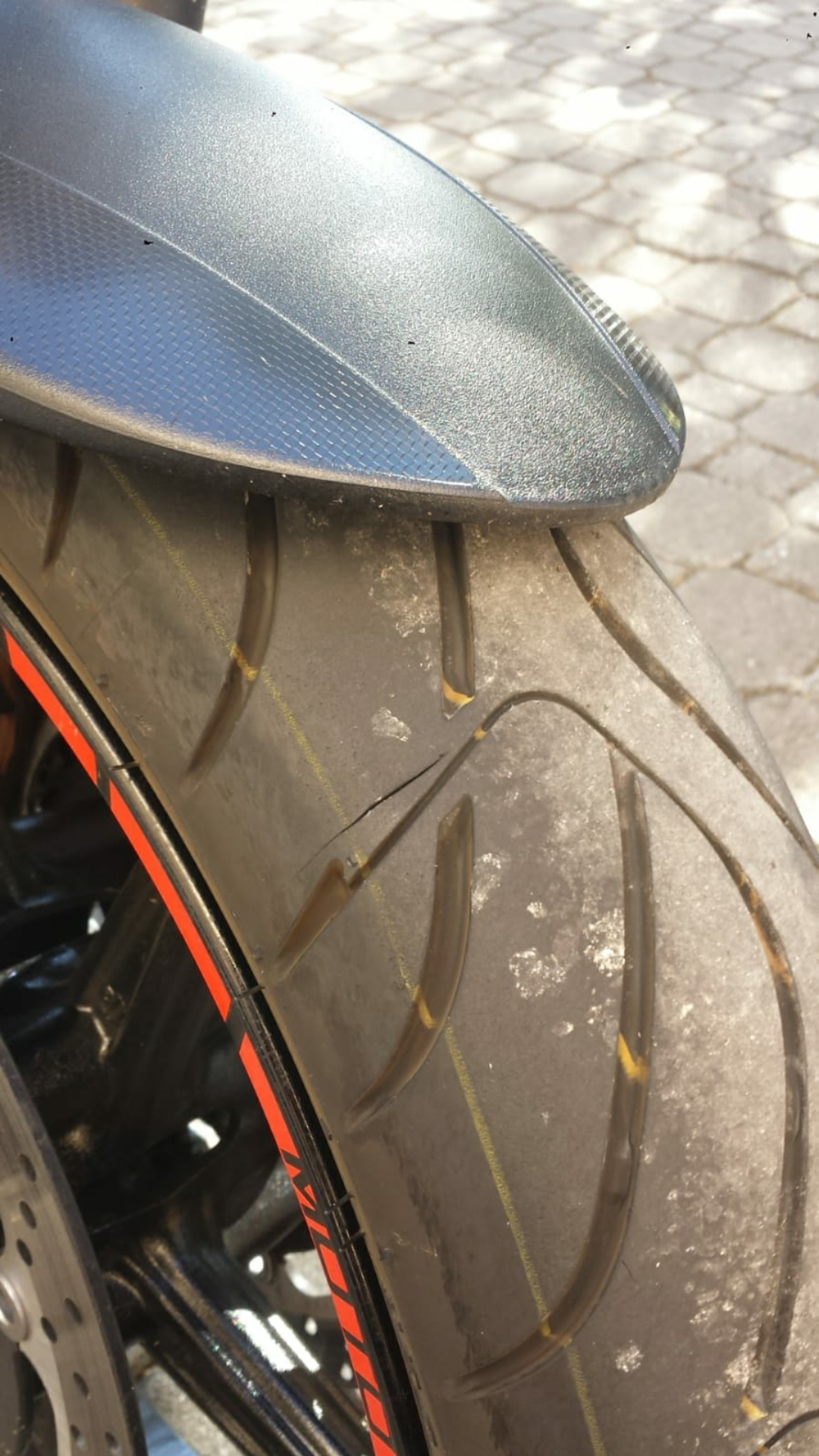 habe gerade entdeckt, dass ich wohl einen kleinen Schnitt in meinem Reifen habe.