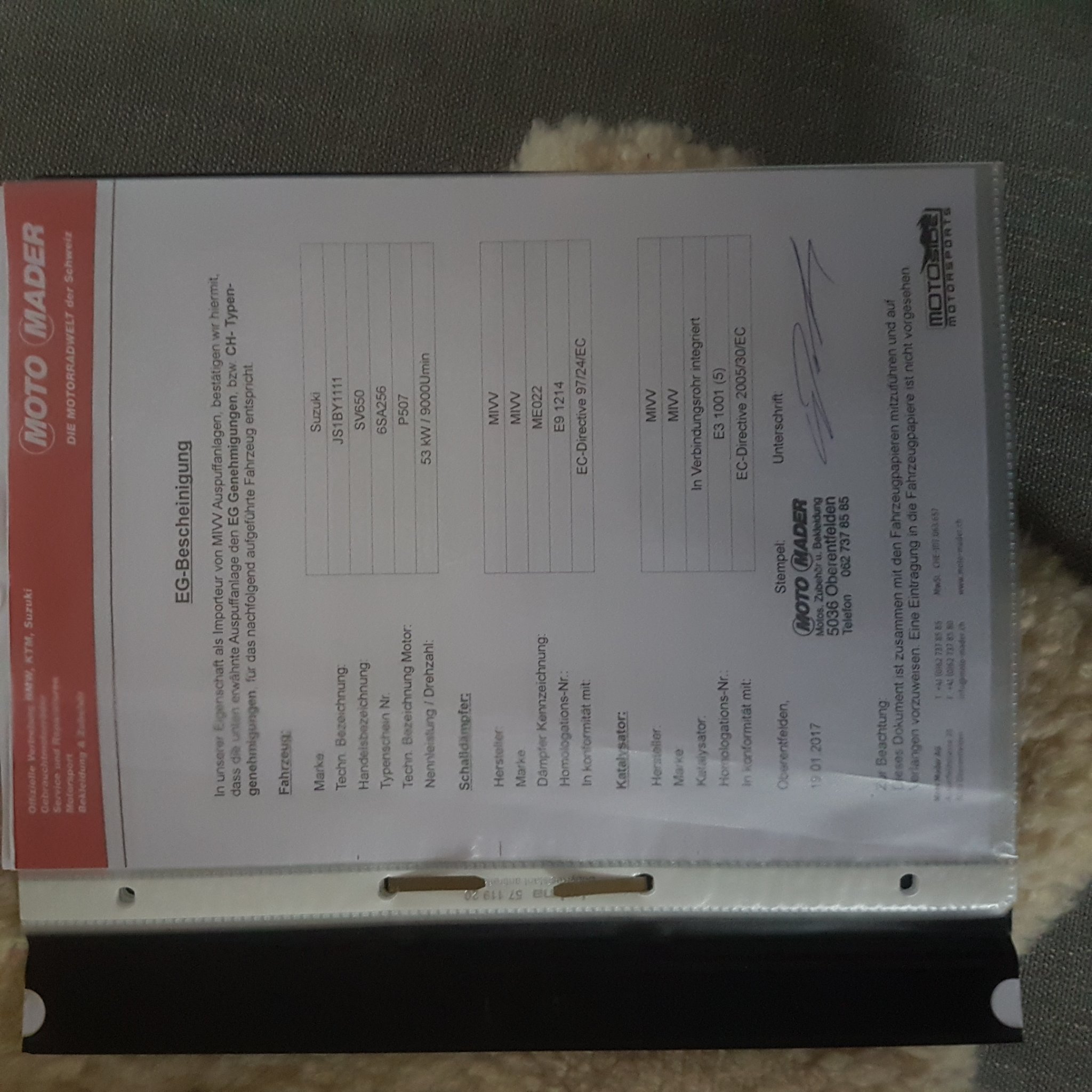 Ich musste meine SV650N A WVBY "Kante" K7 (BJ 08) letzte Woche zur MFK vorführen, jedoch ohne etwas einzutragen.