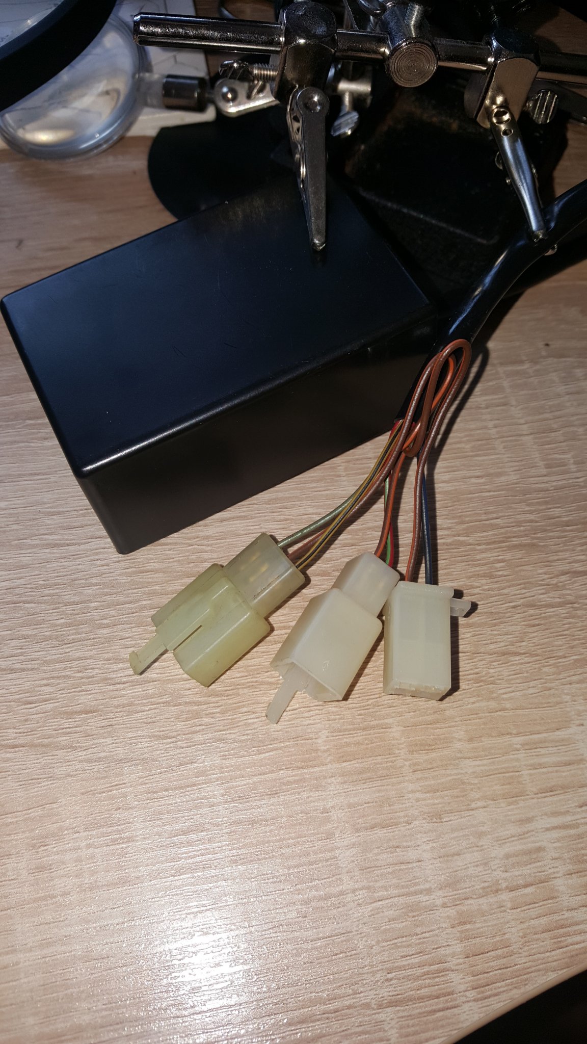 Da ich keinen passenden Original-Stecker hatte, habe ich einen neuen aufgecrimpt. Das war zwar fummelig, weil wenig Platz und recht kurze Kabelenden, aber es ging. (leider kein Bild gemacht). Das erschien mir die einfachste Lösung und ersparte die separate Absicherung der Schaltung.
