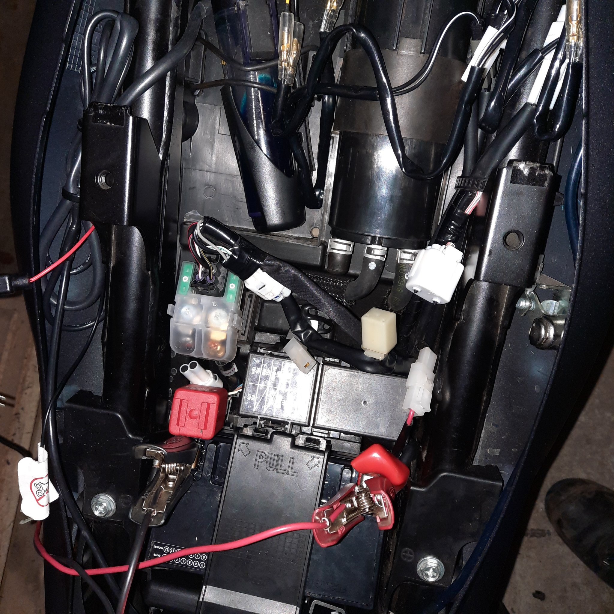 Wie gesagt, die Kappe mit Metallkontakten drin lag unter dem Sitz daneben, das wieder aufzustecken hat das Problem behoben und die Maschine ist angesprungen wie sie das soll. Ich habe keine Ahnung was Suzuki da fehlkonstruiert hat, dass dieses Ding so oft abfällt.